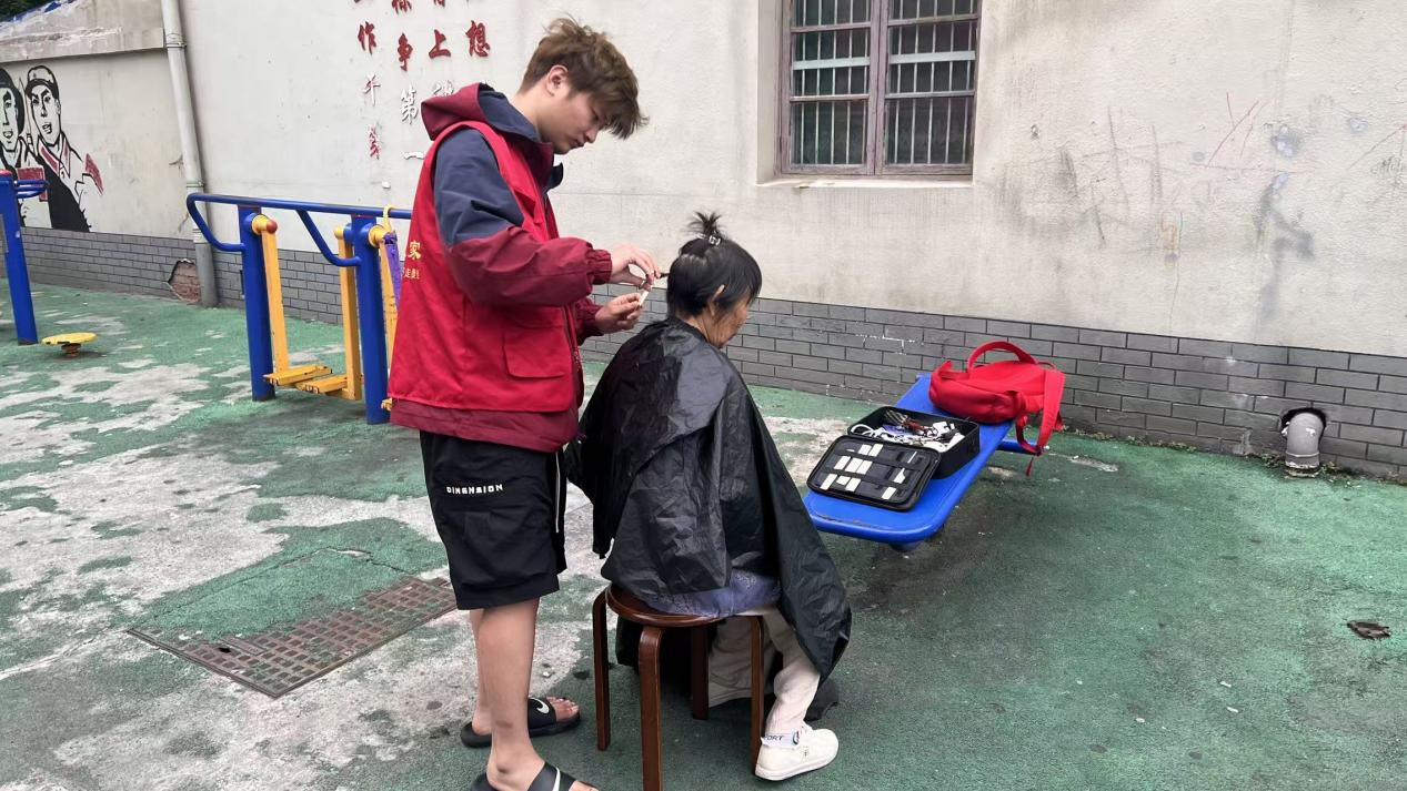 另一侧,义剪志愿者们的服务台前也排起了长队。志愿者们技艺娴熟、态度亲切,细致地为居民尤其是老年人提供免费理发服务。理完发的居民们精神焕发,脸上洋溢着满意的笑容。