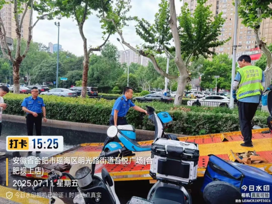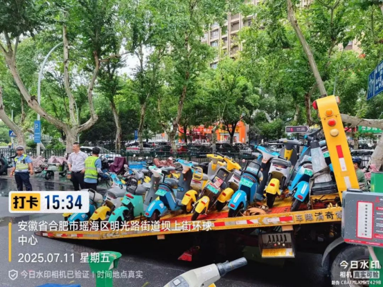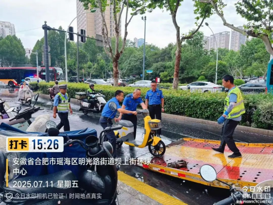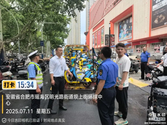 针对近期吾悦广场周边非机动车乱停放导致道路拥堵、市民反映强烈的问题,7月11日下午,明光路街道联合瑶海交警一中队雷霆出击,对重点区域开展专项整治行动,现场累计清理并拖离违规停放的非机动车31辆,有力回应了市民关切,显著提升了该区域的通行秩序。