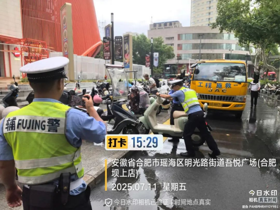 “整治是手段,长效才是目标。”现场执法交警强调。明光路街道城管中队负责人表示,将持续加强与交警部门的联动,通过增加巡查频次、设置物理隔离设施、科学规划非机动车停车线等措施巩固整治成果。同时,街道呼吁广大市民自觉遵守停车规定,养成文明停车习惯,共同维护安全、有序、畅通的城市环境,让吾悦广场的繁华与秩序并行不悖。