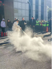 演练活动严格按照预定方案执行,模拟大厦内某区域因电路故障引发“火情”,消控中心接到烟感报警器后,立即启动应急响应程序,同时通过应急广播播放疏散指令,疏散组成员引导大厦内商户、员工沿指定疏散路线快速、有序地撤离至室外安全集结区。整个过程紧张有序,人员疏散迅速,达到了预期效果。之后在大厦一楼西大门广场又进行了灭后器材实操演练,由安全员向全体参演人员详细讲解了火灾的类型、初起火灾的扑救方法、以及灭火器、消防栓的正确使用方法、步骤和注意事项。随后,参演人员分组轮流上场,在专业人员的指导下,使用干粉灭火器对模拟着火点进行实际扑救操作。通过亲身体验