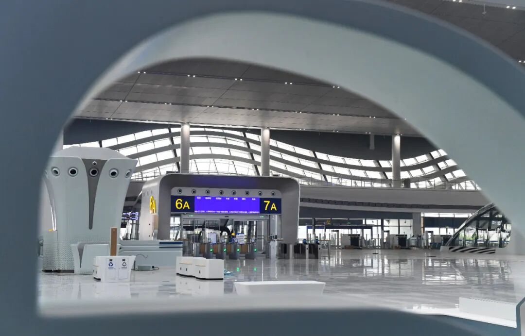 “屋顶有1.04万平方米‘水滴天窗’,让阳光充分倾泻而入,减少日间人工照明。行走其间,通透明亮。”方文彬说,天窗还融入大湖水波、科技脉动的文化元素,单体长35米。旅客在这里,随手一拍都能出片。