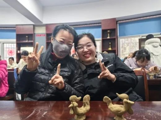 活动以非遗手工泥塑体验开场。社区特意邀请非遗泥塑传承人程老师现场教学,女性们在老师的指导下发挥创意,将泥土塑造成“公鸡”造型。在这一过程中,大家不仅感受到非遗文化的独特魅力,还提升了艺术修养与动手能力。