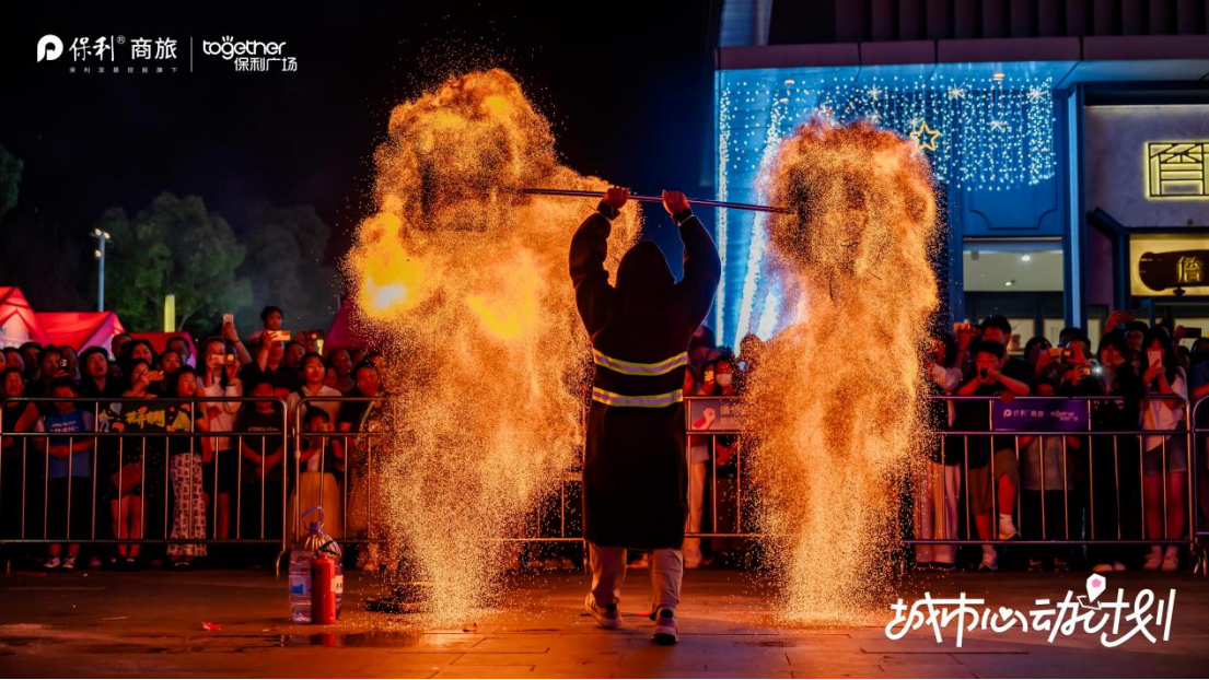图丨在保利广场,非遗打铁花吸引游客驻足欣赏