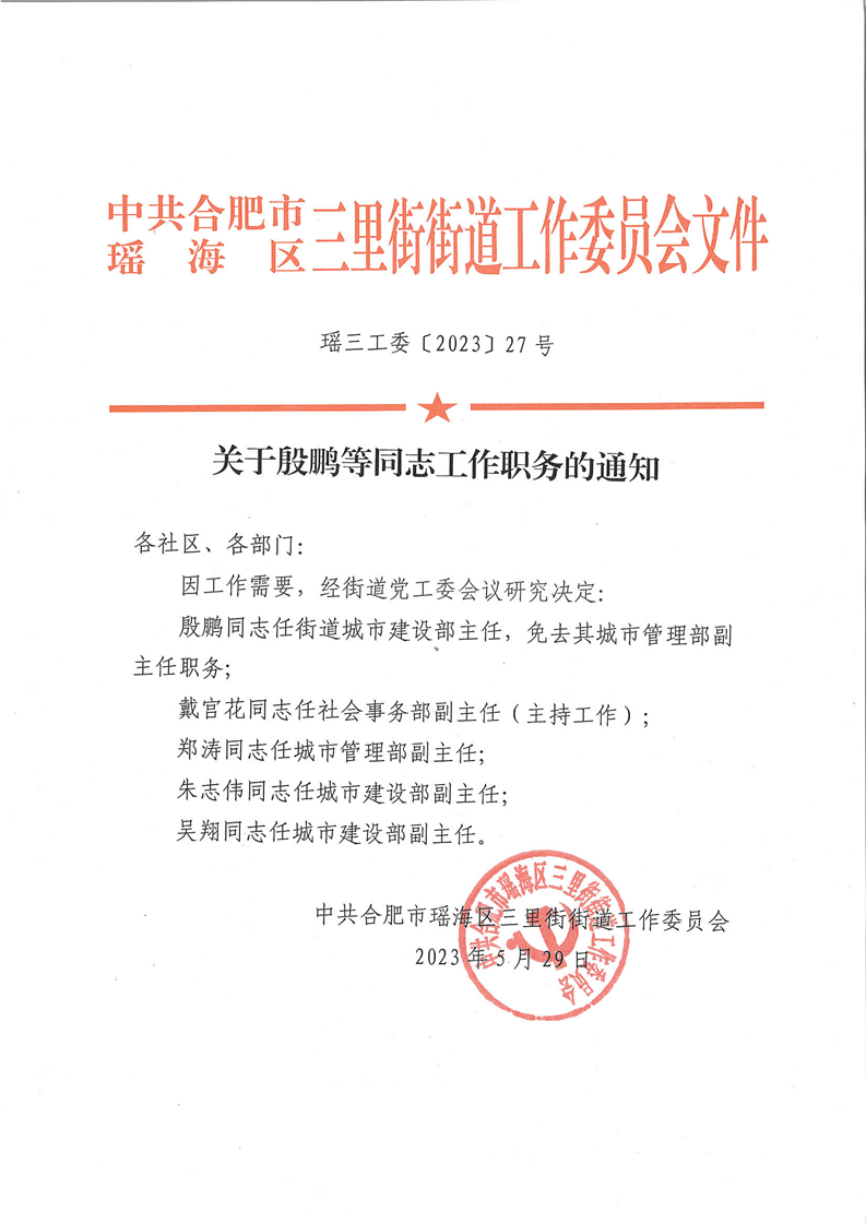 【本级人事调整】关于殷鹏等同志工作职务的通知