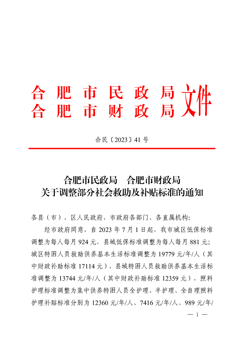 【政策标准】关于调整部分社会救助及补贴标准的通知