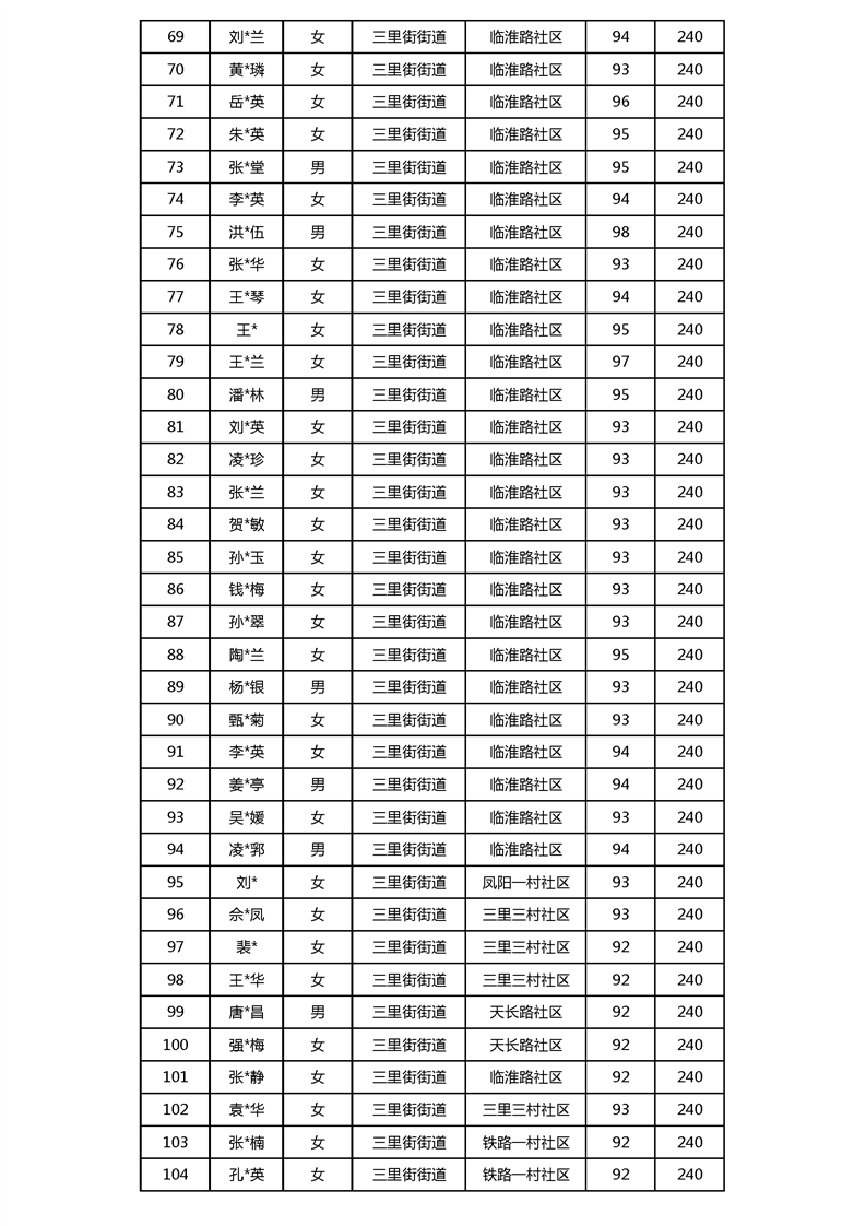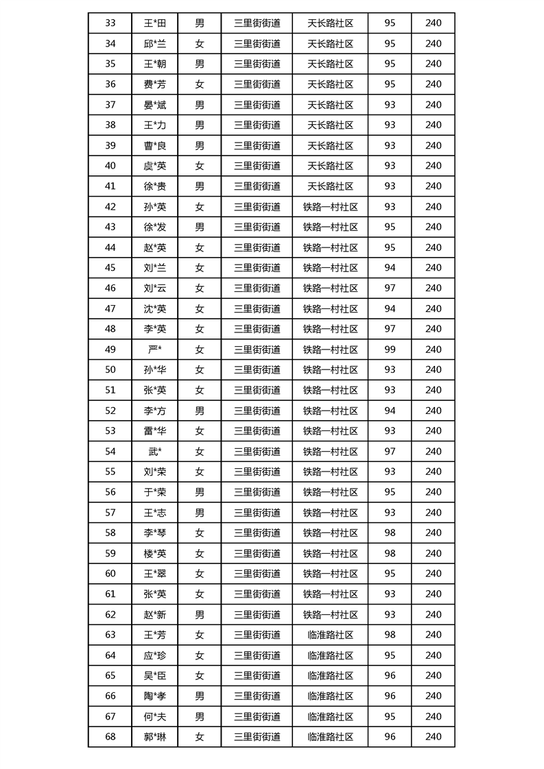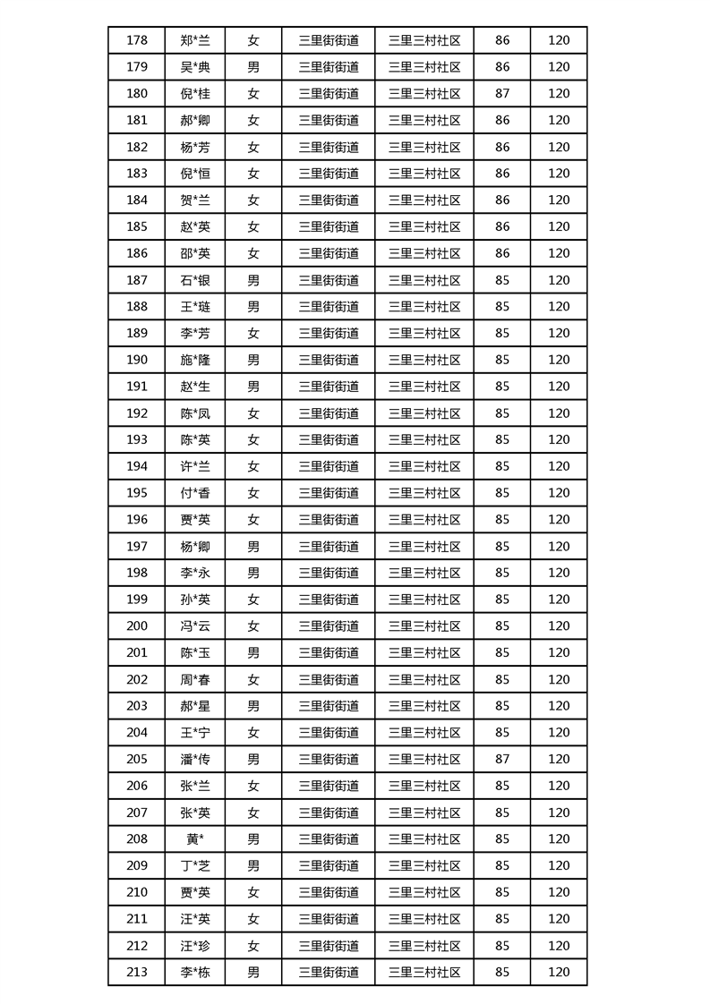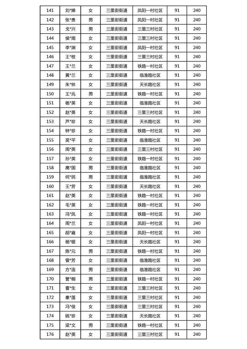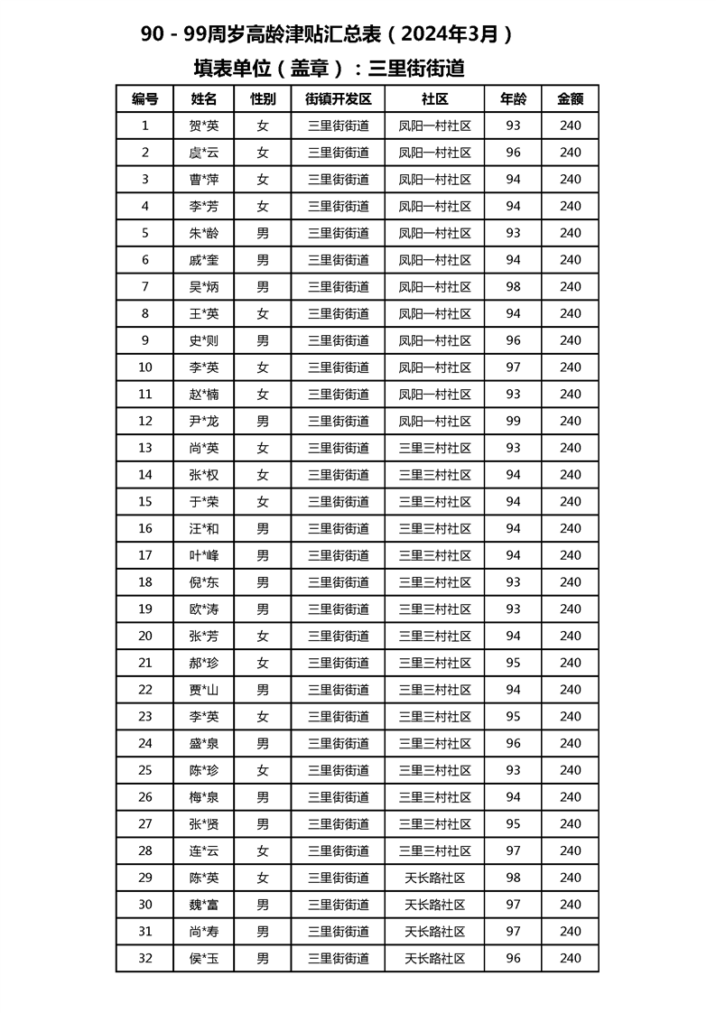 【分配结果】(2024年3月)三里街街道80周岁以上高龄津贴发放表 |
