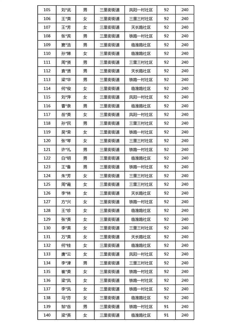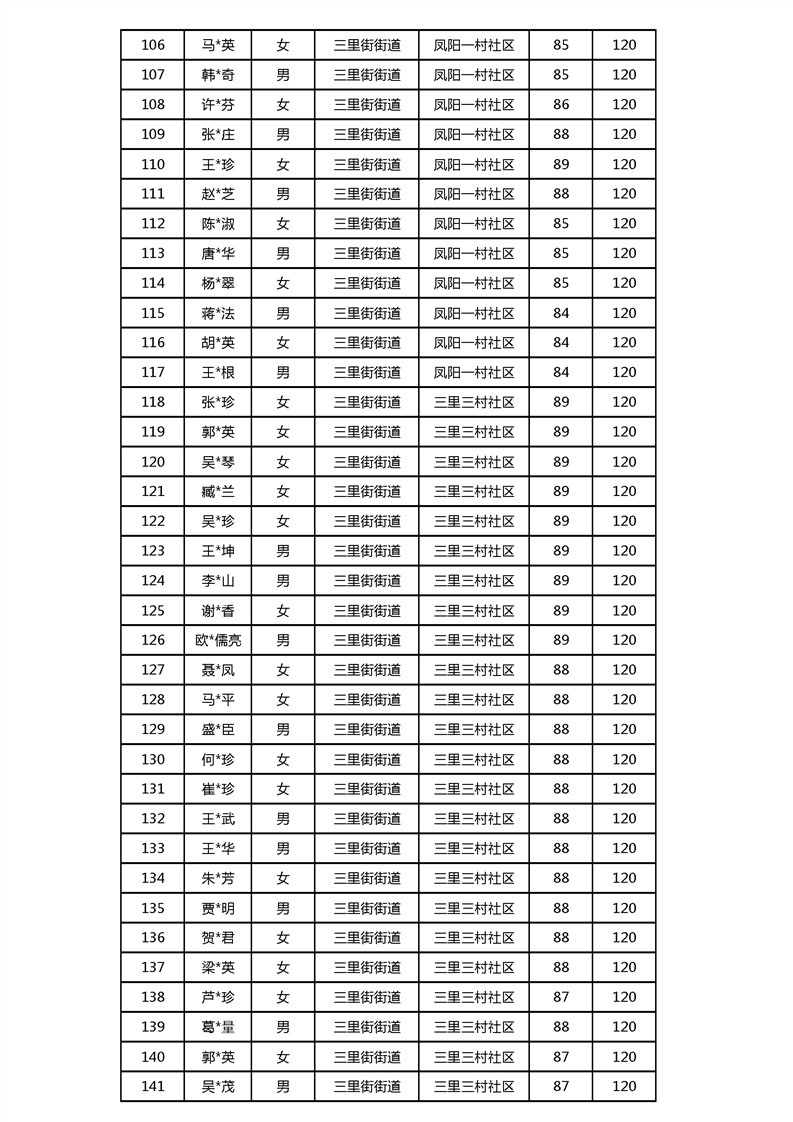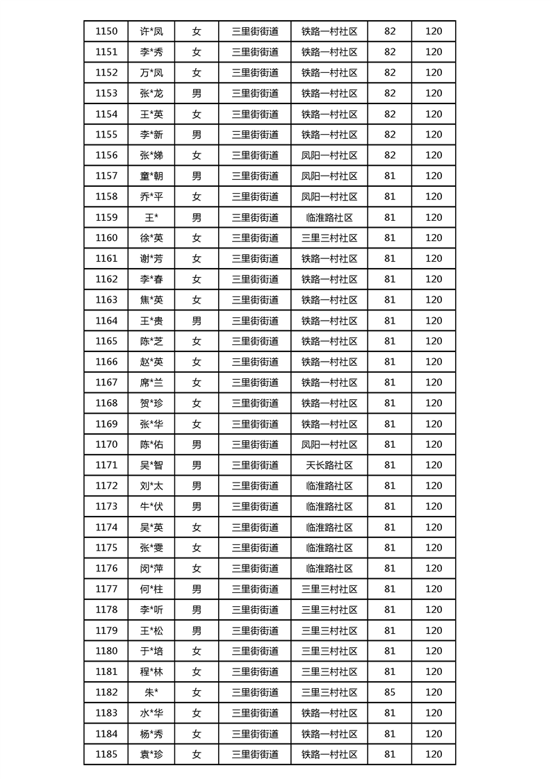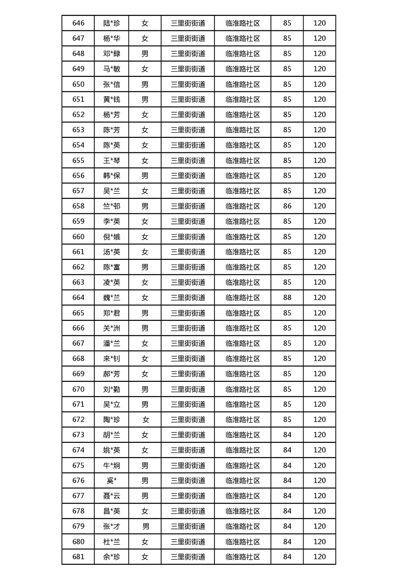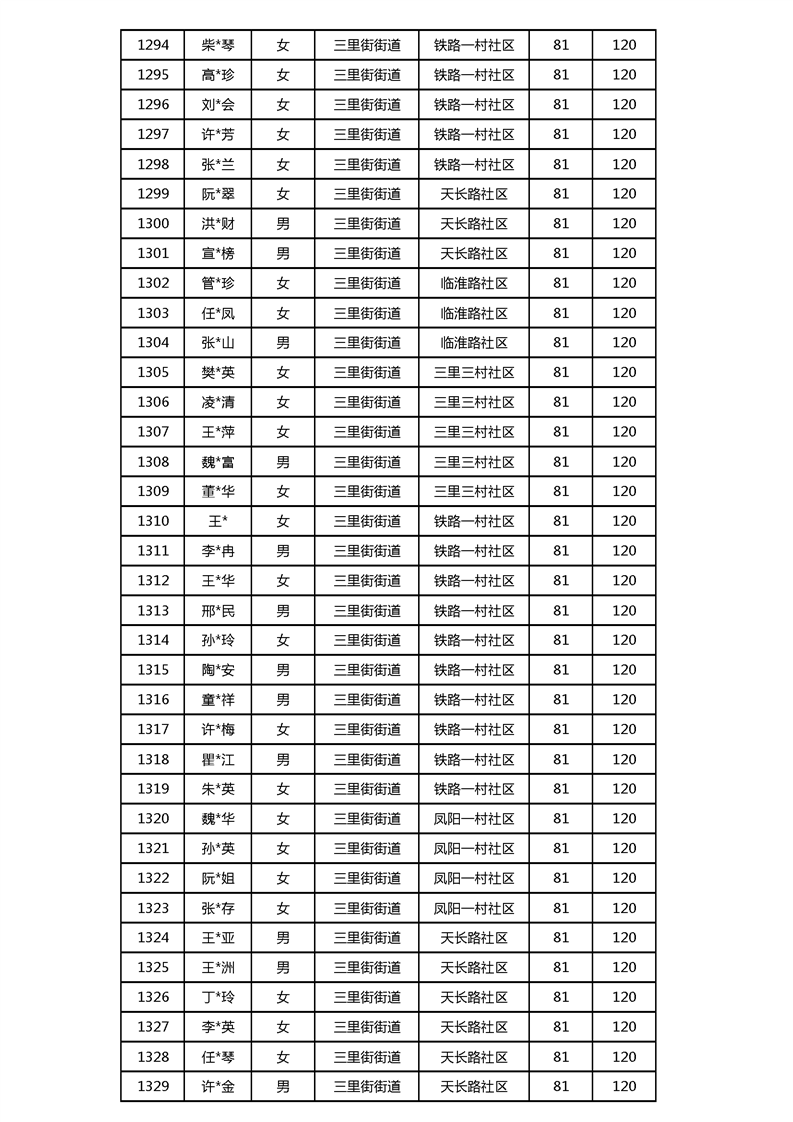 【分配结果】(2024年3月)三里街街道80周岁以上高龄津贴发放表 |