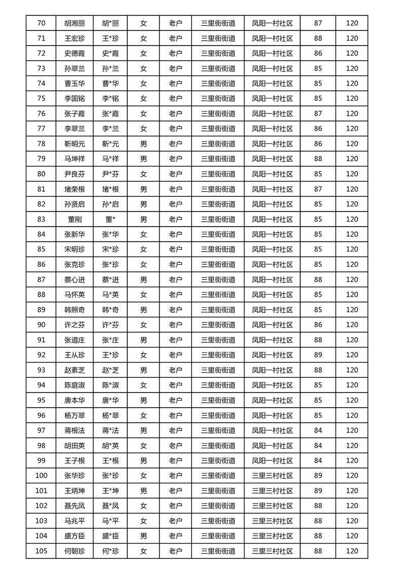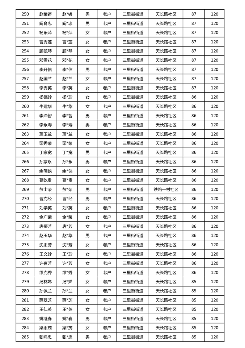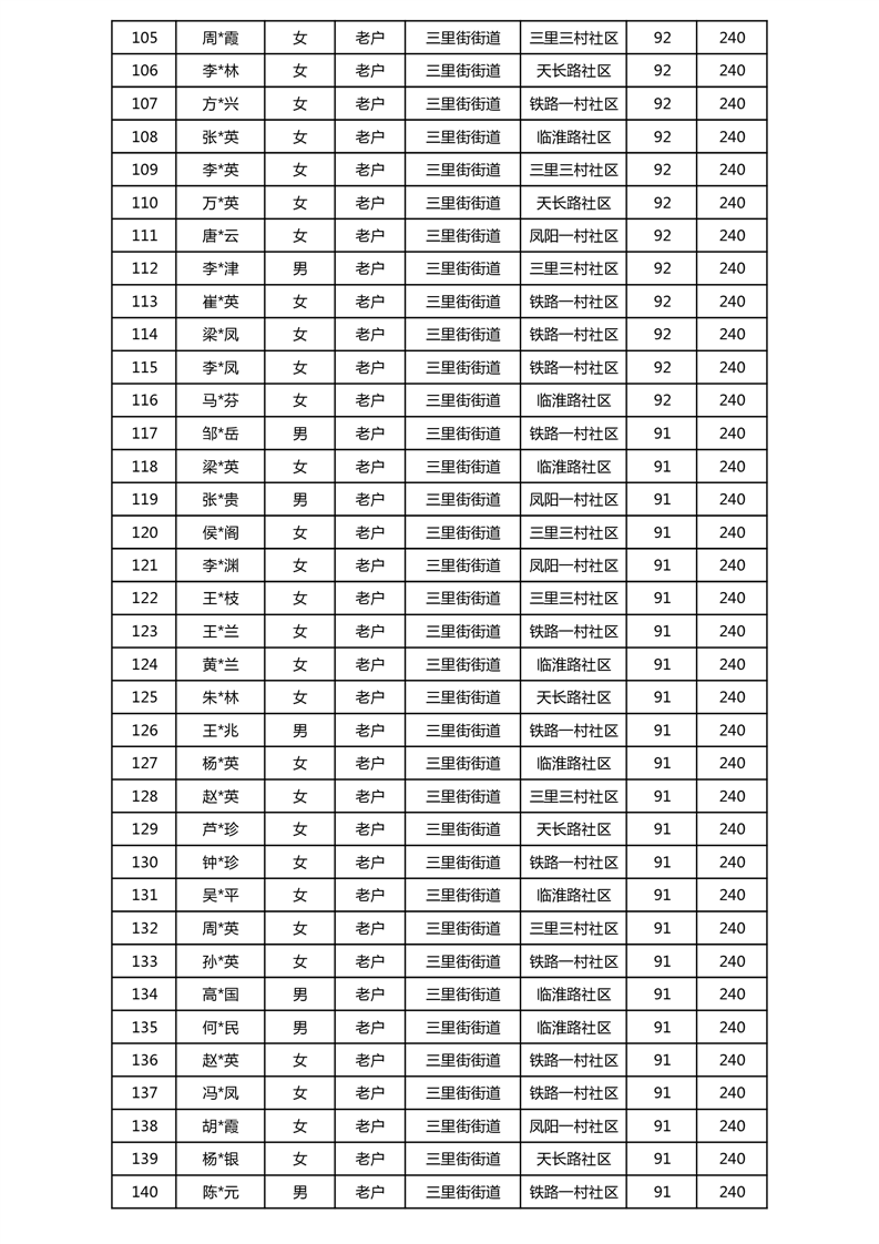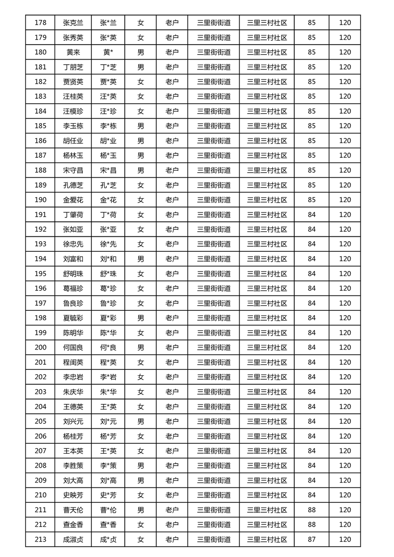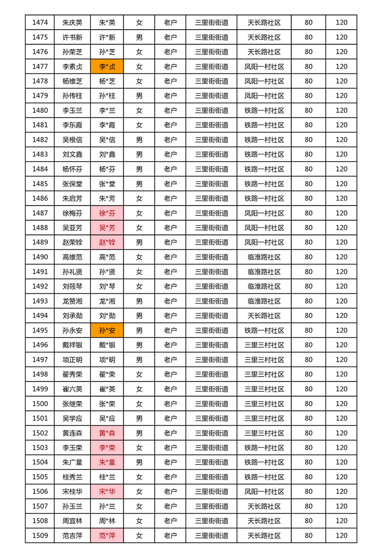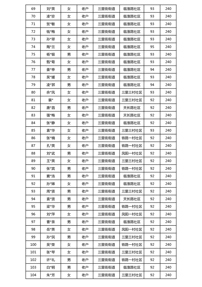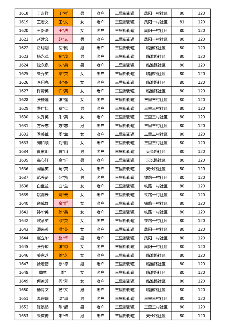【分配结果】(2024年11月)三里街街道80周岁以上高龄津贴发放表