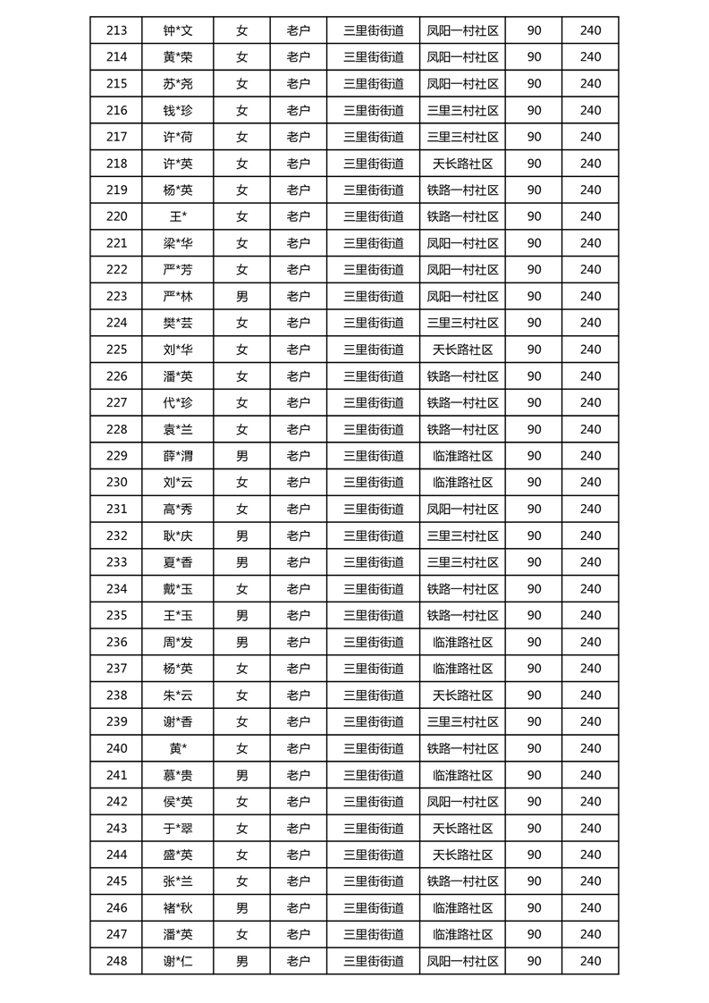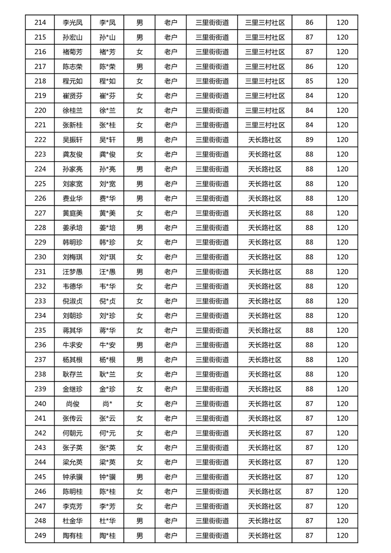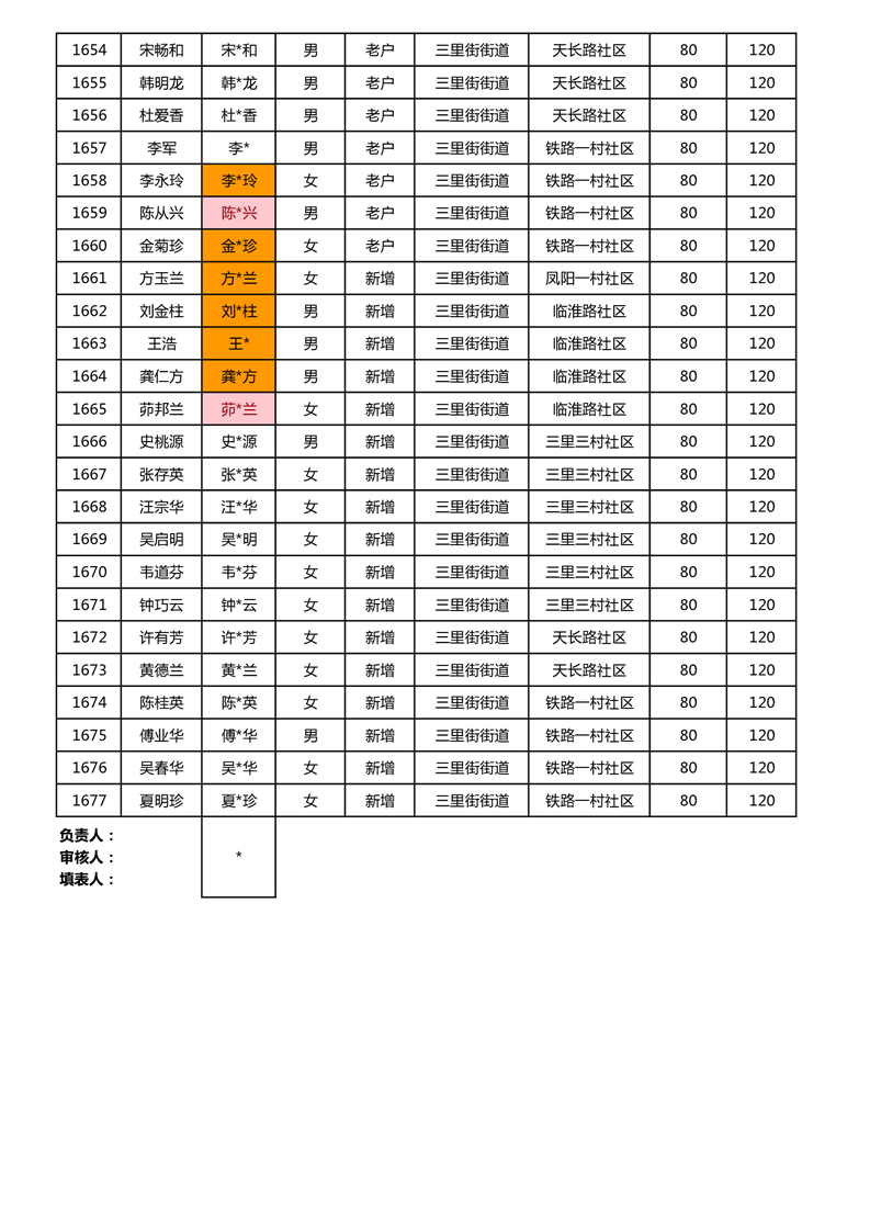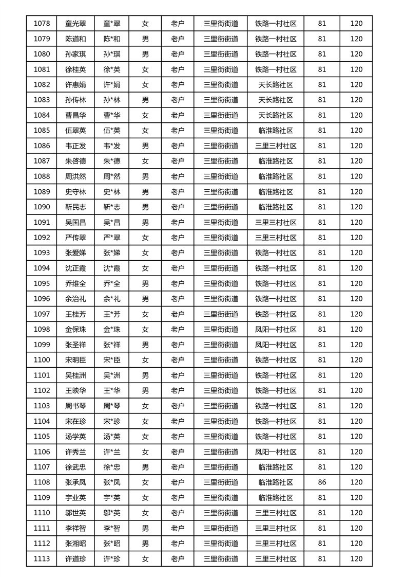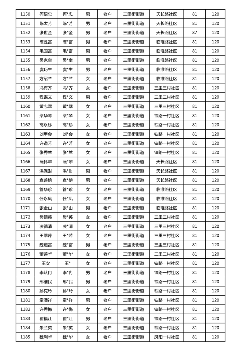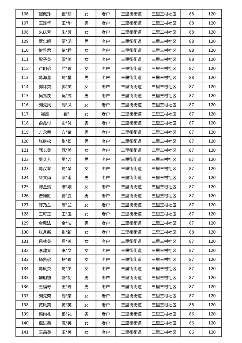 【分配结果】(2024年11月)三里街街道80周岁以上高龄津贴发放表