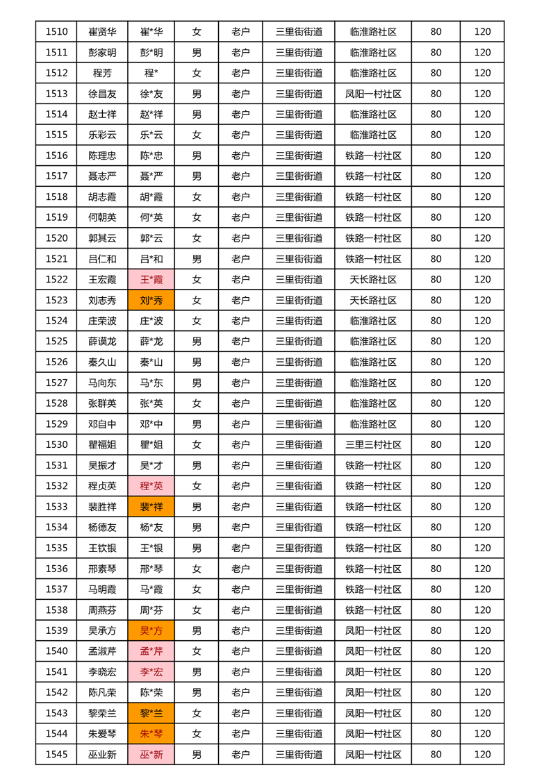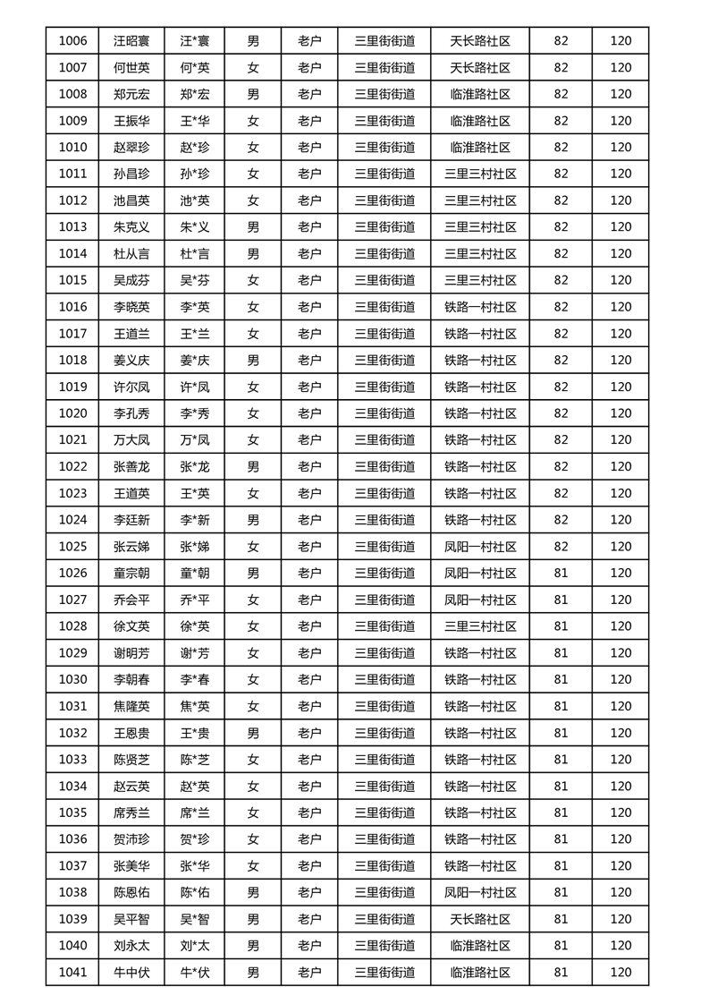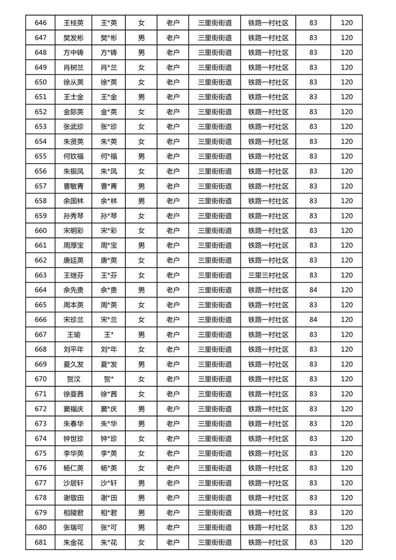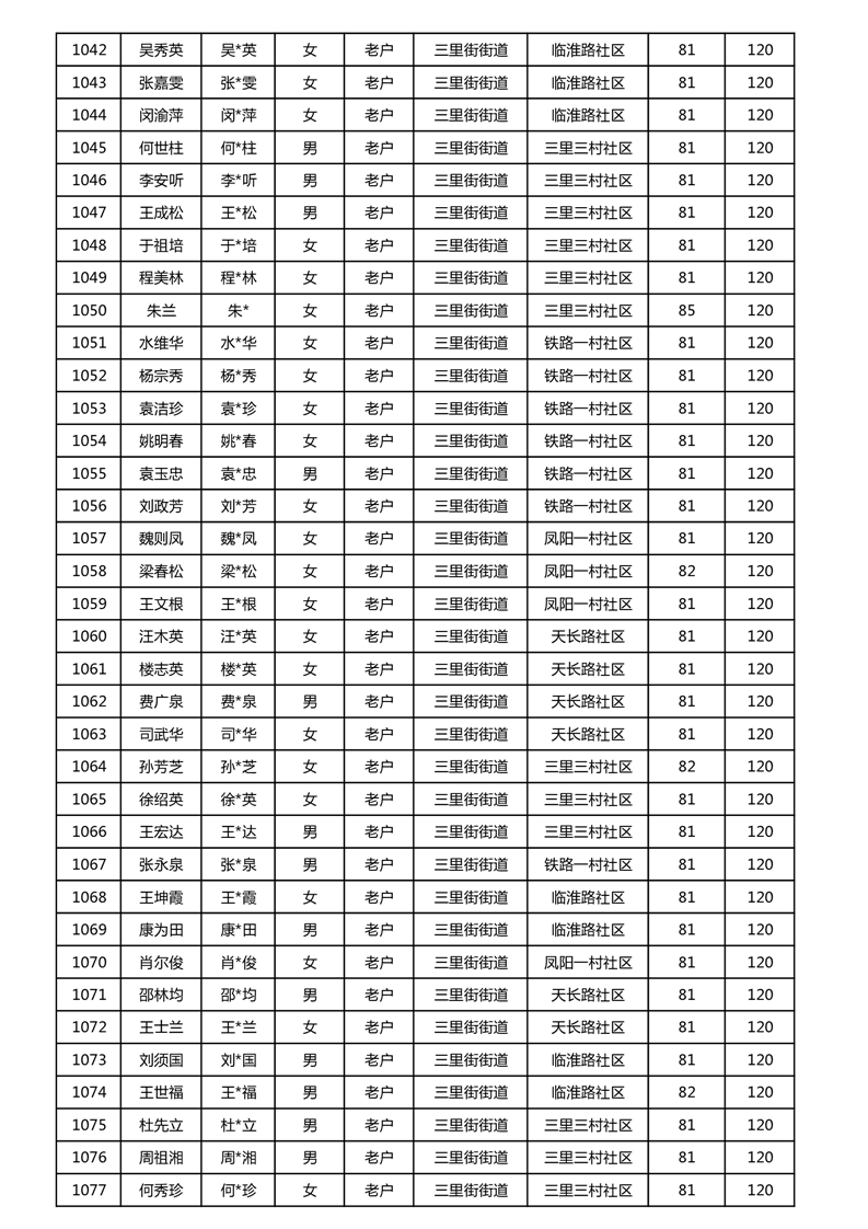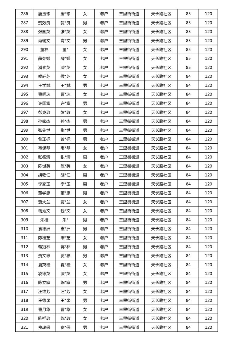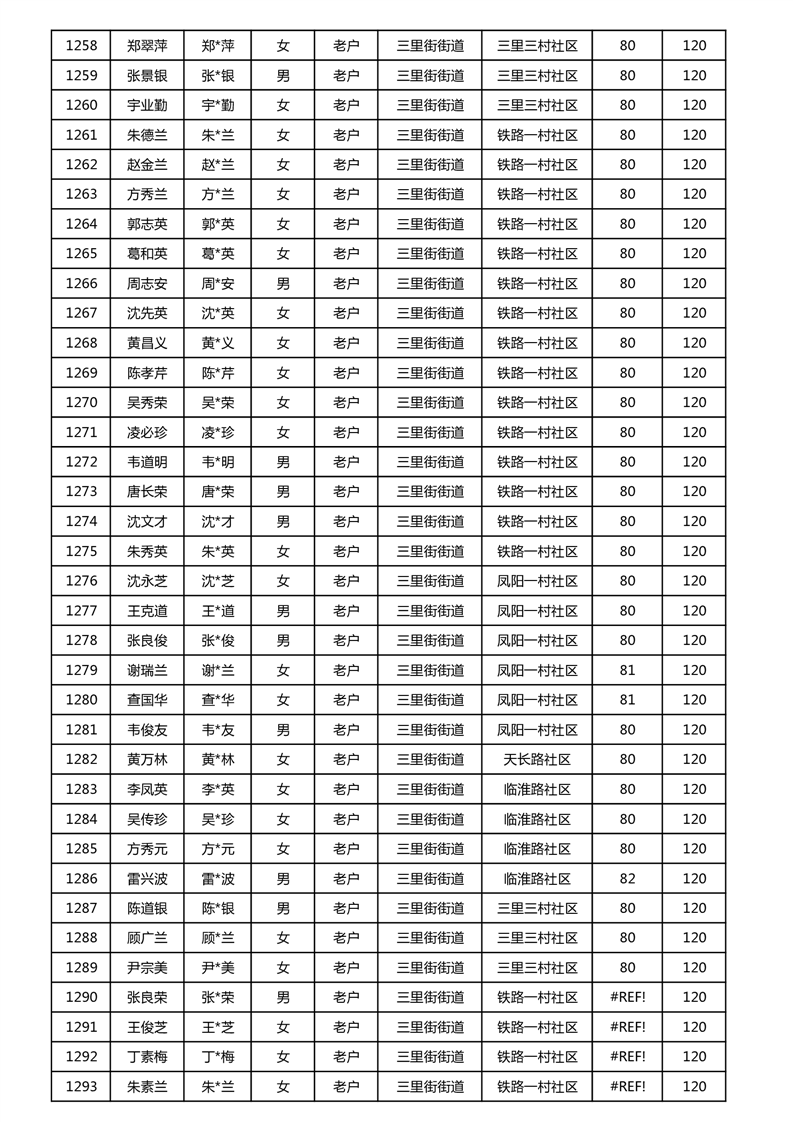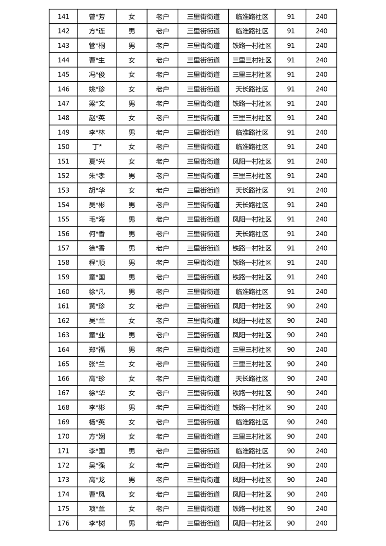 【分配结果】(2024年11月)三里街街道80周岁以上高龄津贴发放表