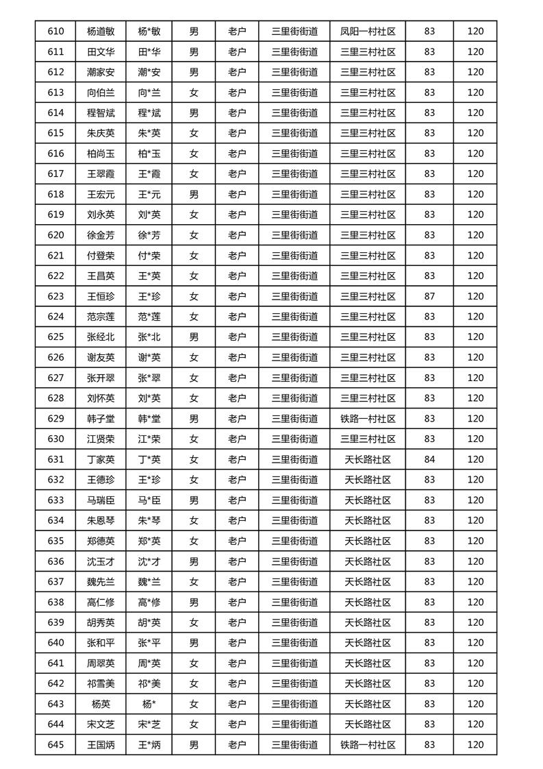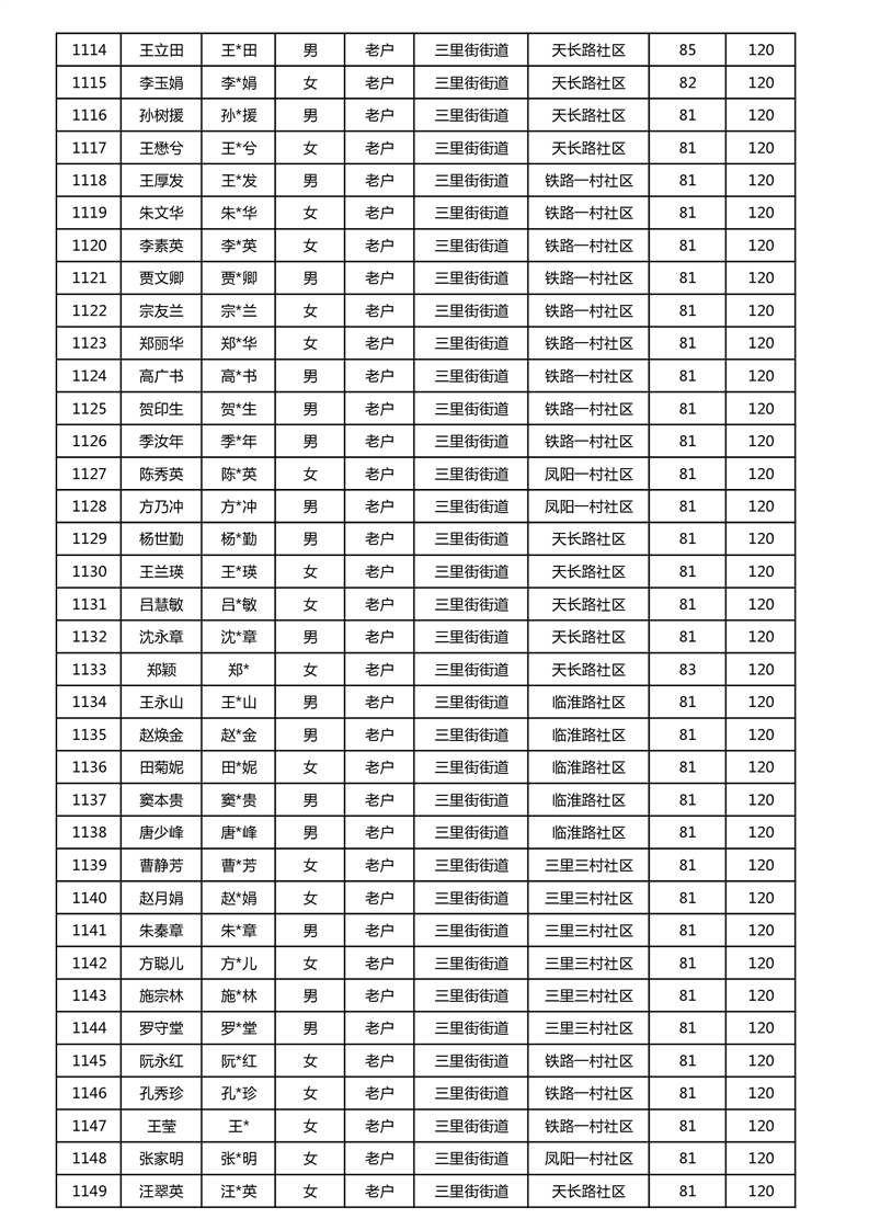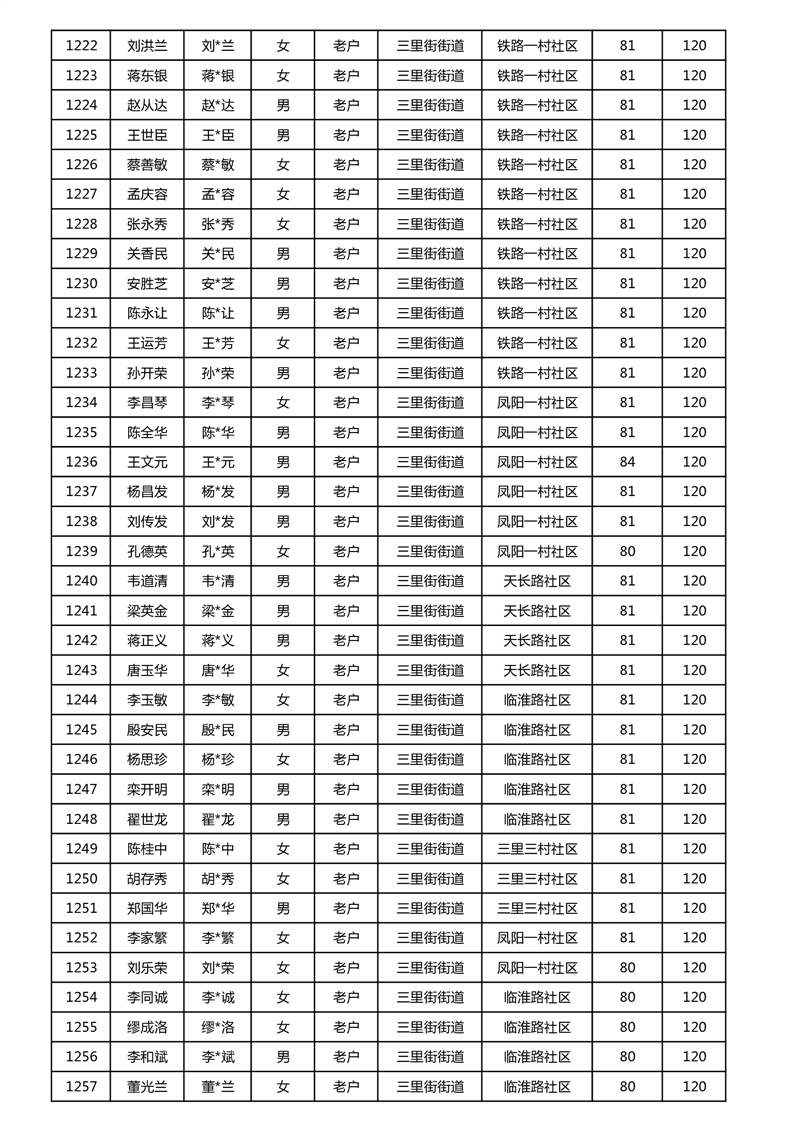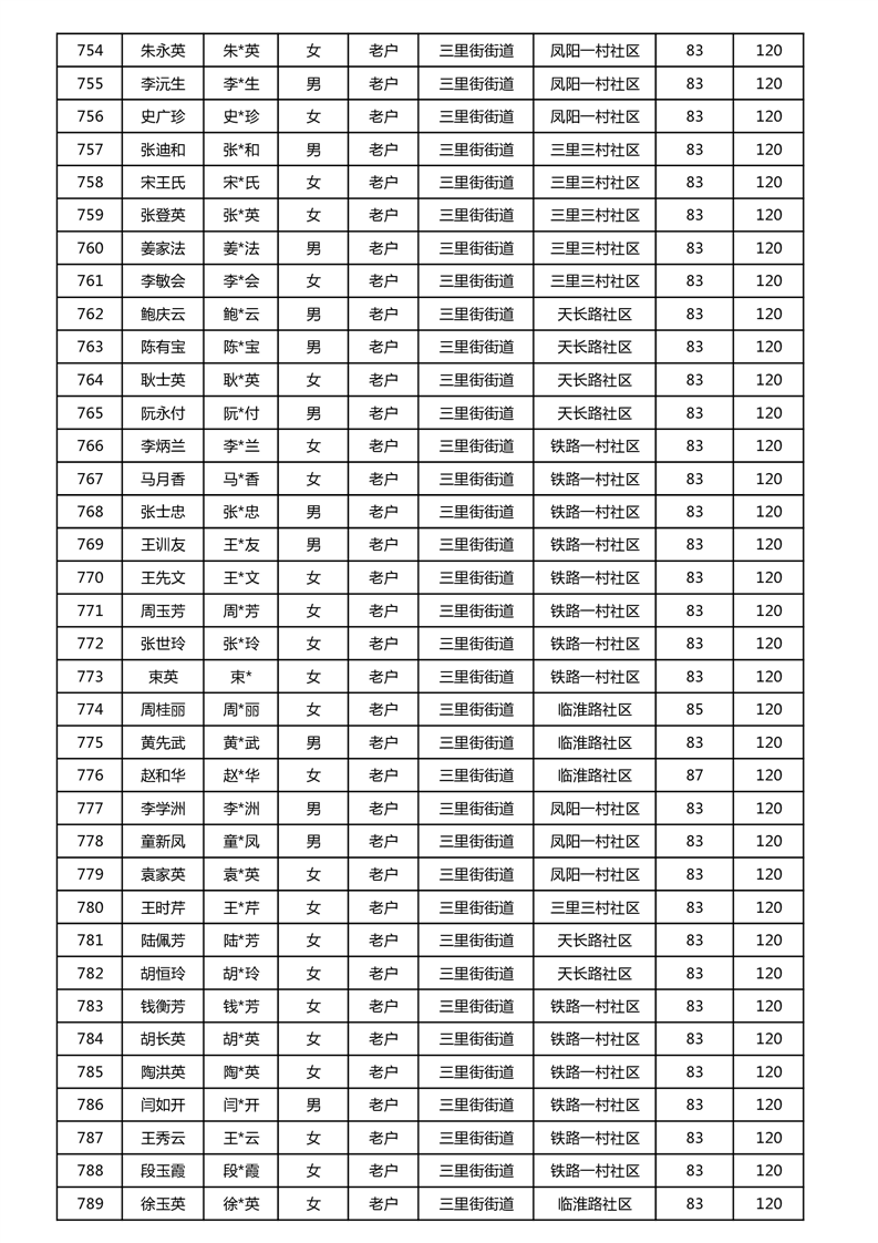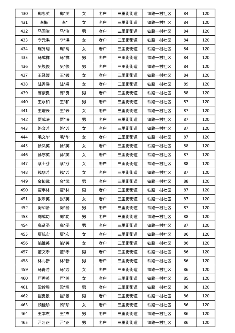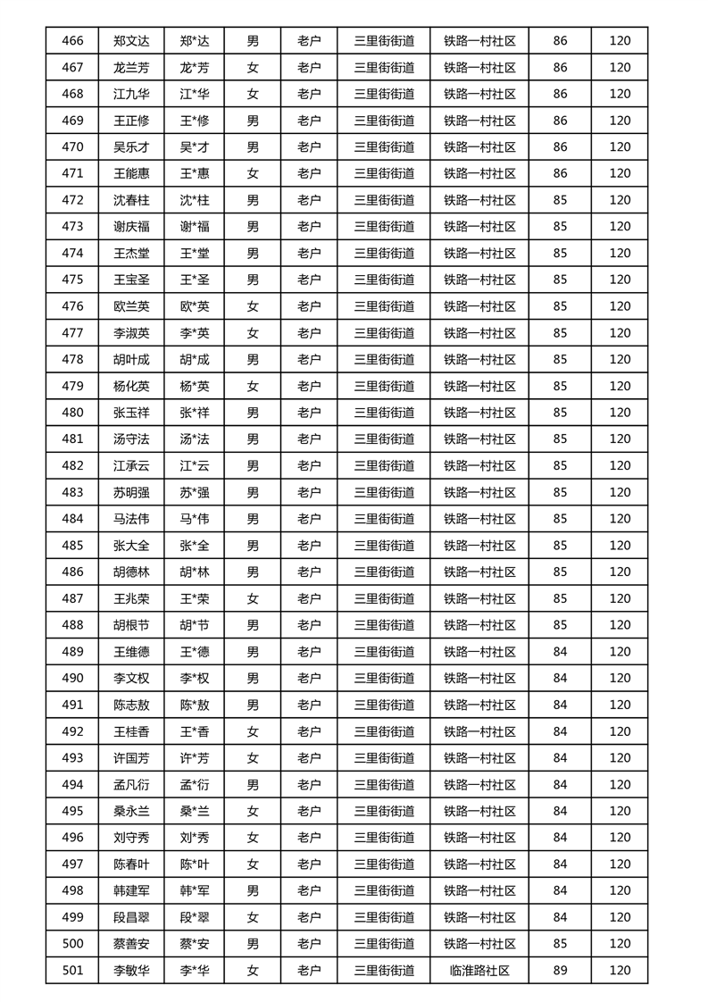 【分配结果】(2024年11月)三里街街道80周岁以上高龄津贴发放表