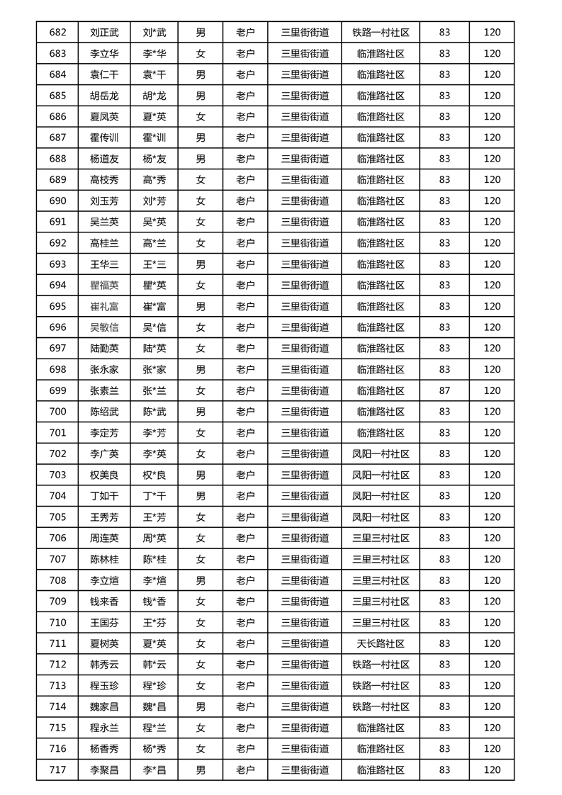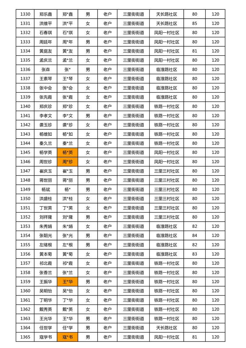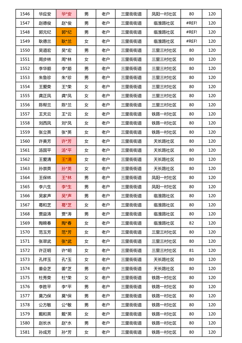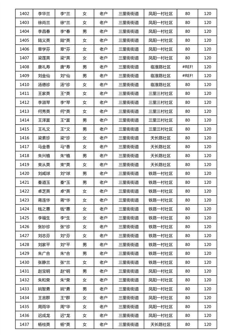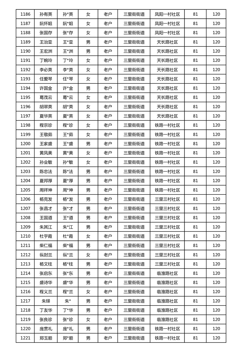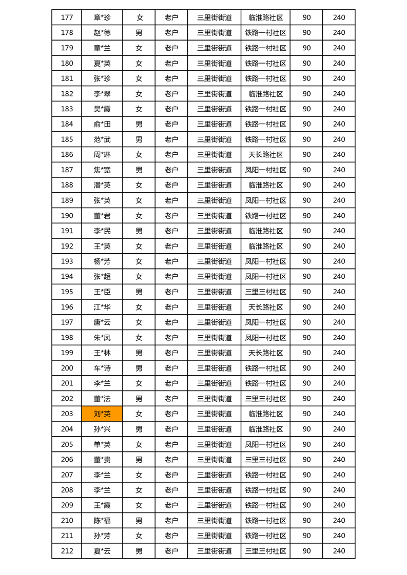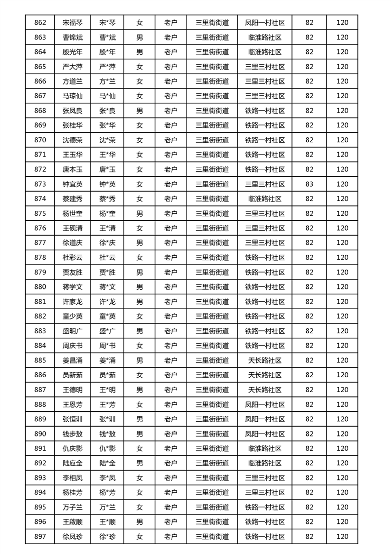 【分配结果】(2024年11月)三里街街道80周岁以上高龄津贴发放表