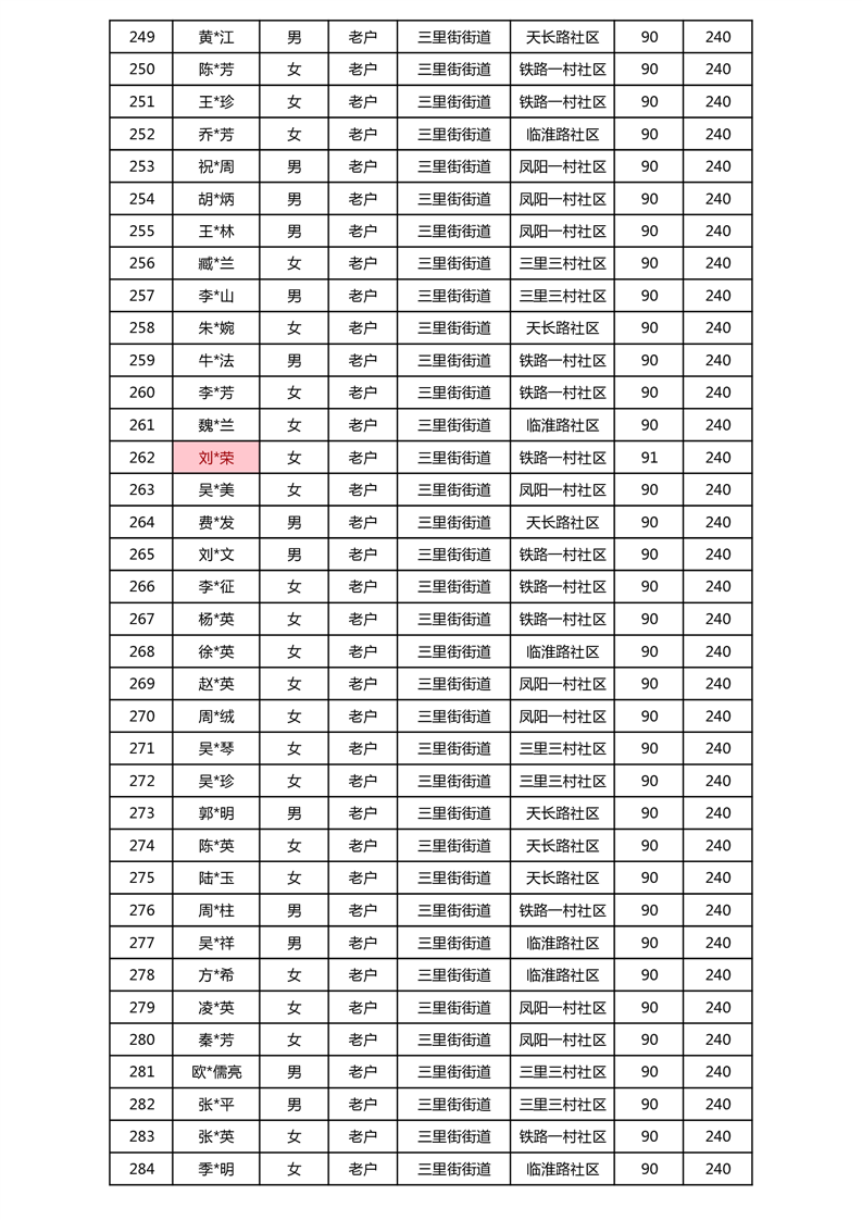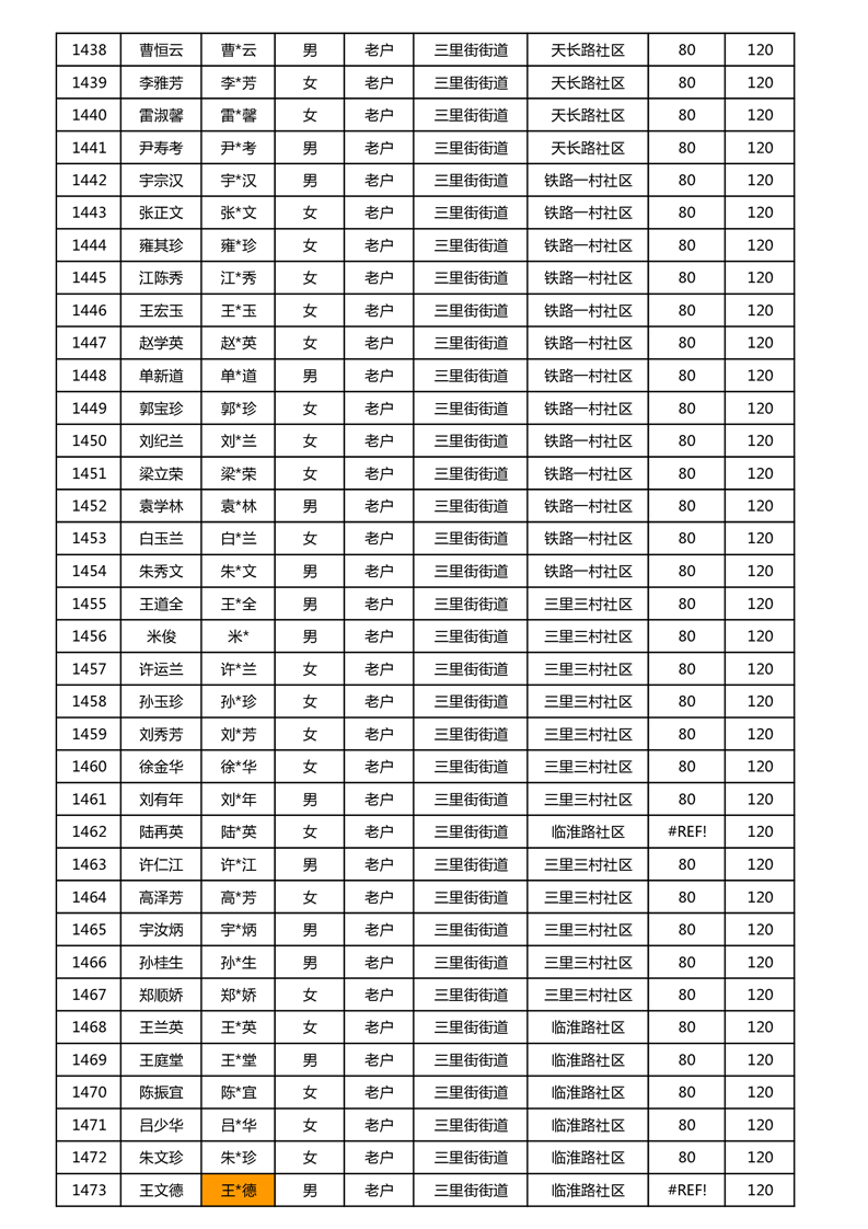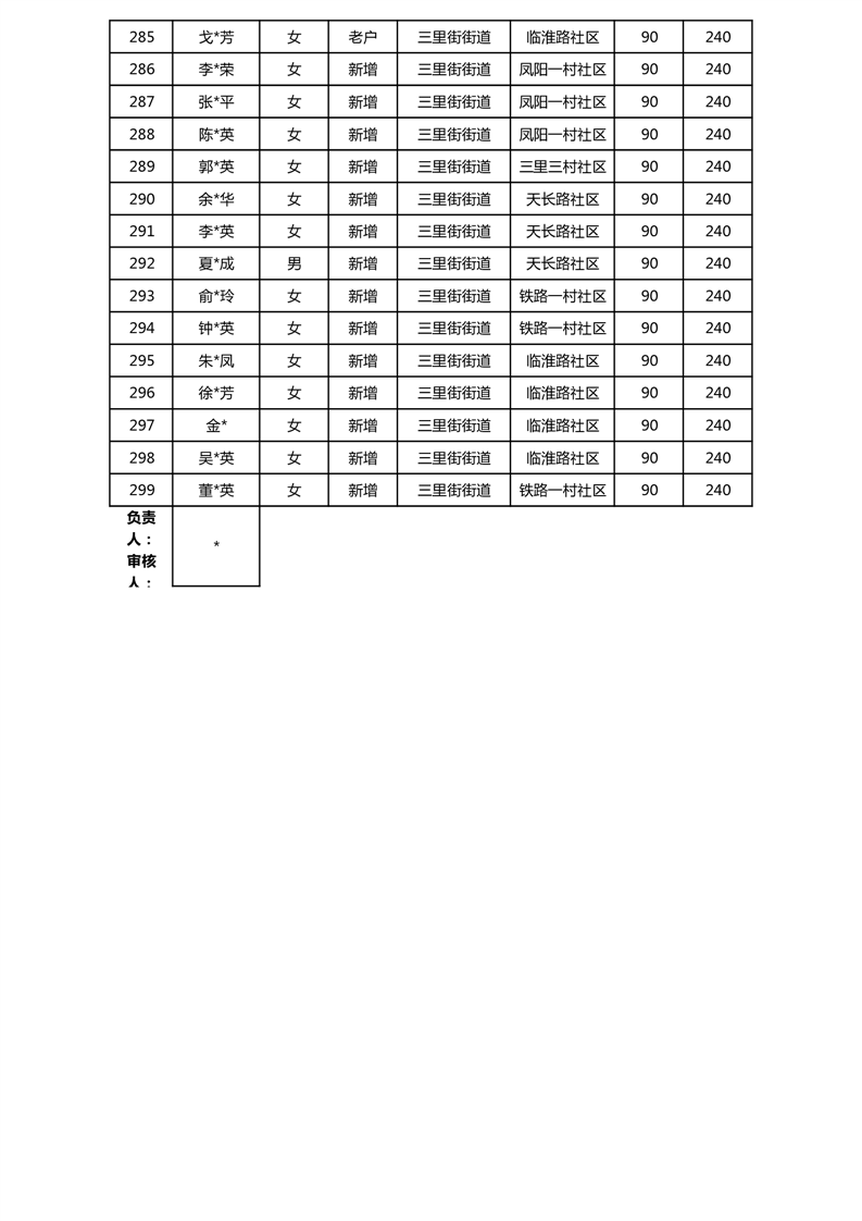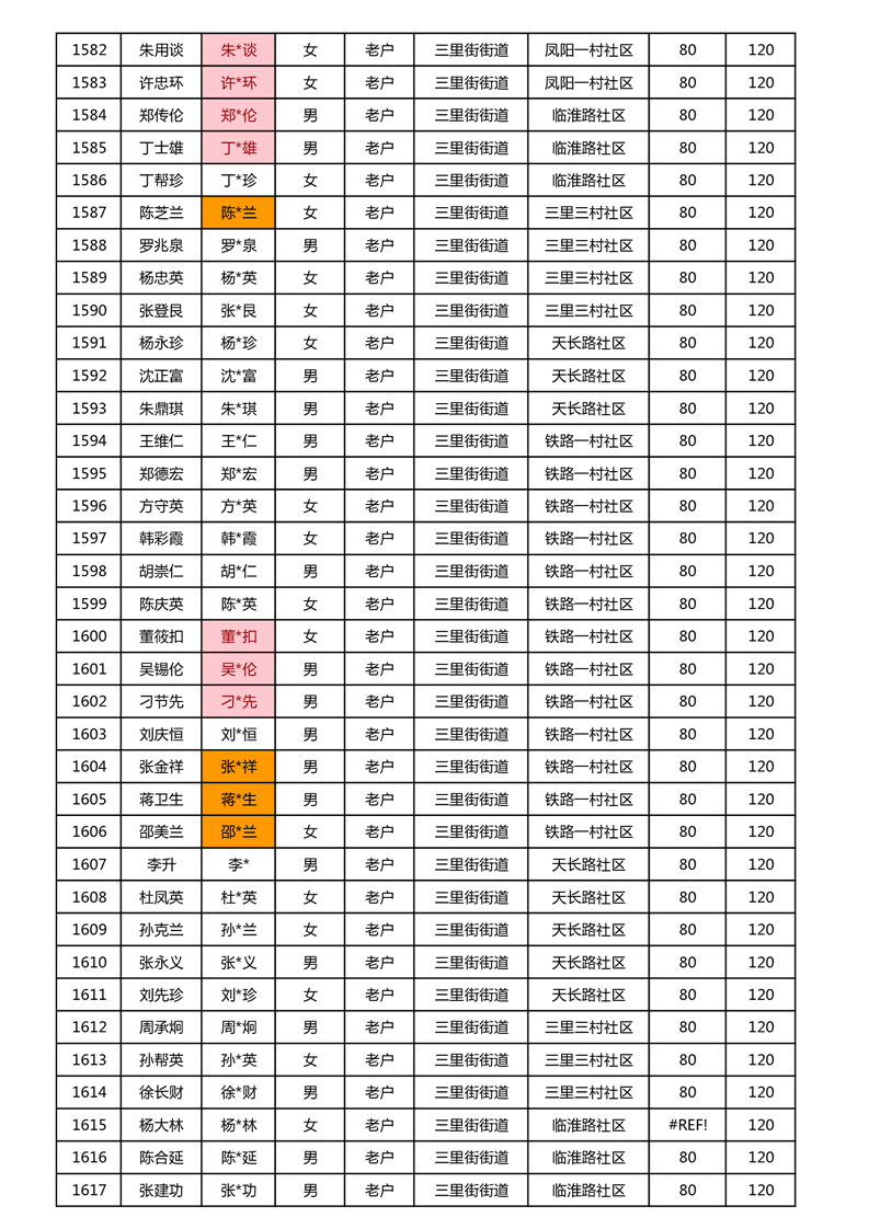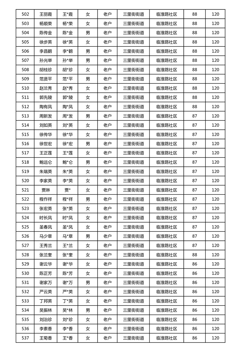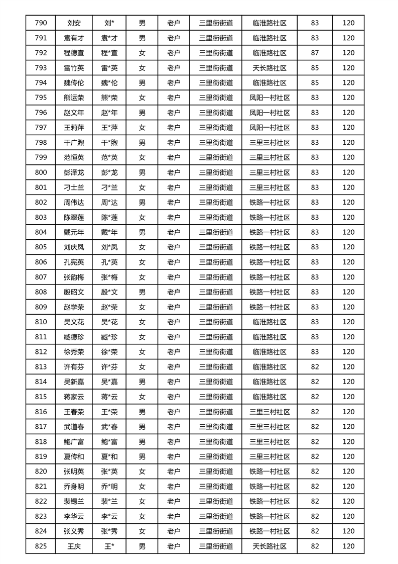 【分配结果】(2024年11月)三里街街道80周岁以上高龄津贴发放表