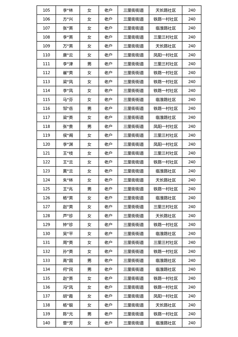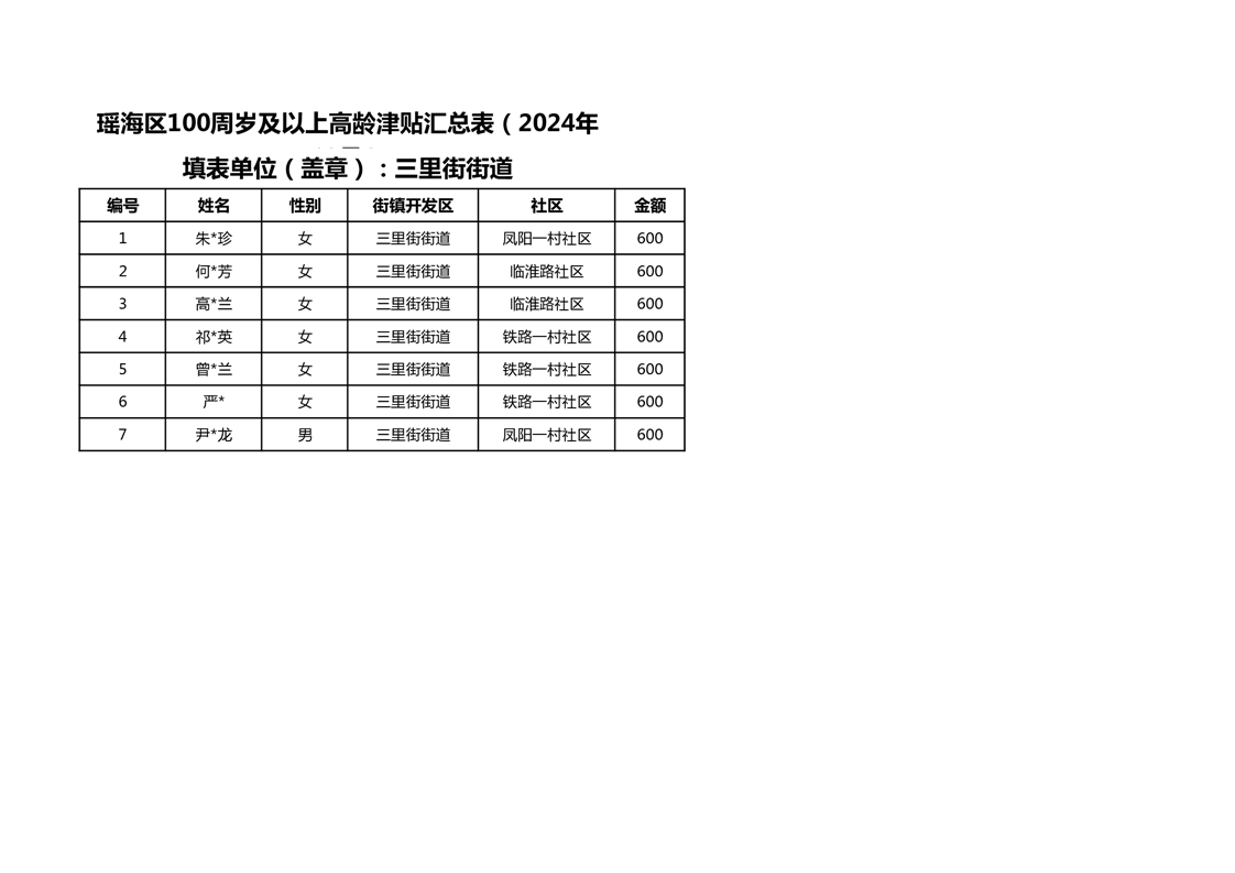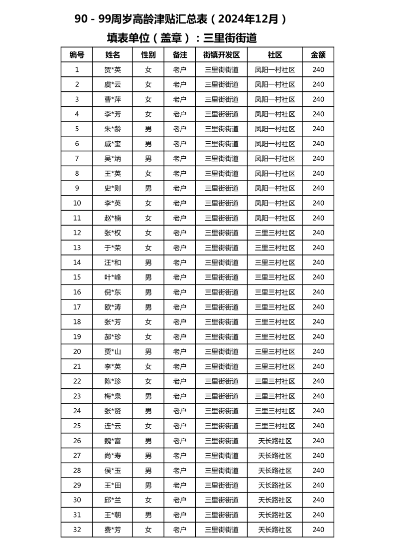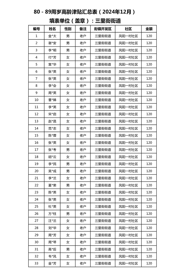 【分配结果】(2024年12月)三里街街道80周岁以上高龄津贴发放表 |