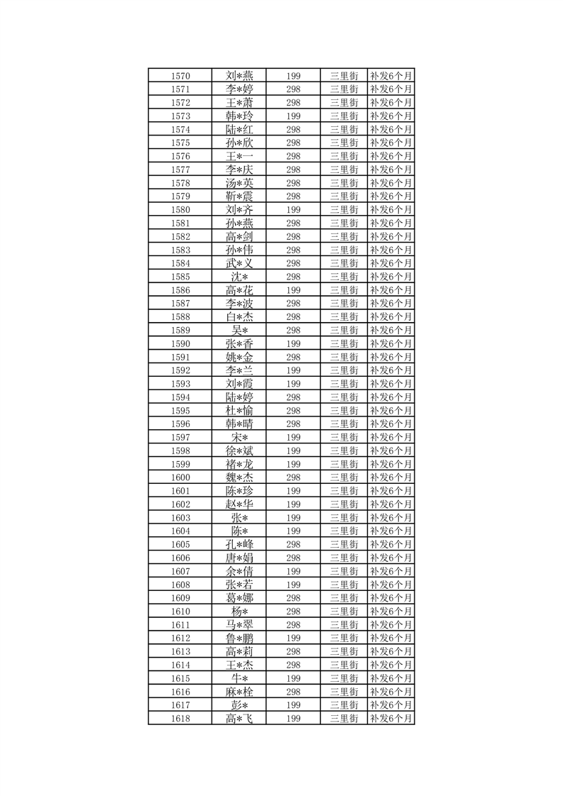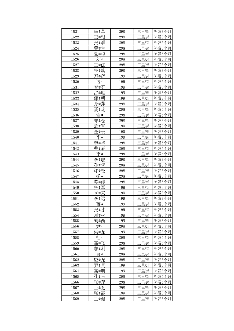 【分配结果】(2025年1月)三里街街道困难残疾人生活补贴发放表 |