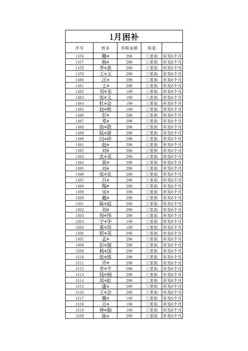 【分配结果】(2025年1月)三里街街道困难残疾人生活补贴发放表