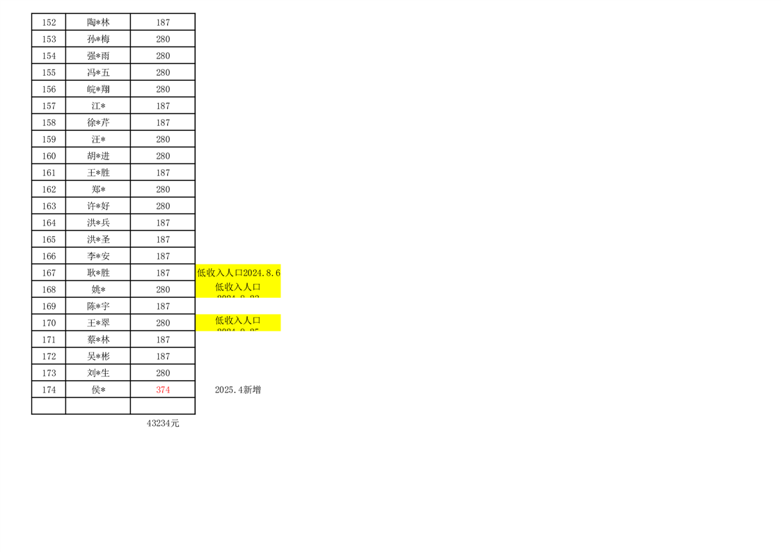 【分配结果】(2025年4月)三里街街道困难残疾人生活补贴发放表