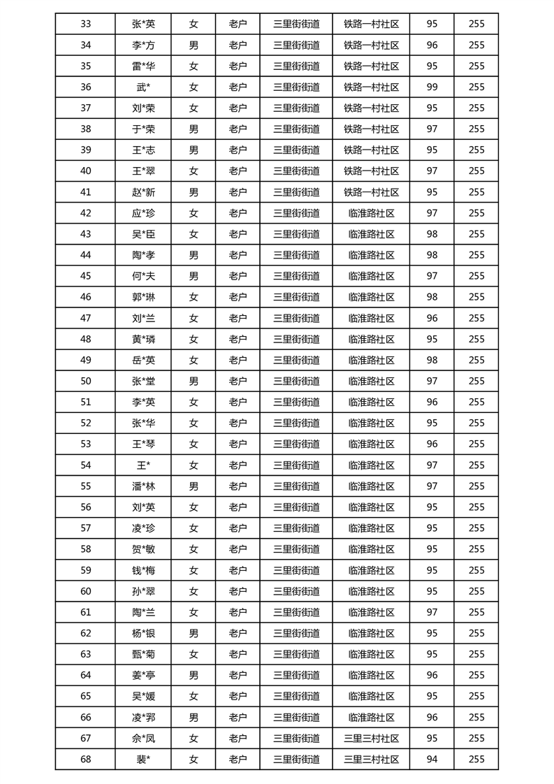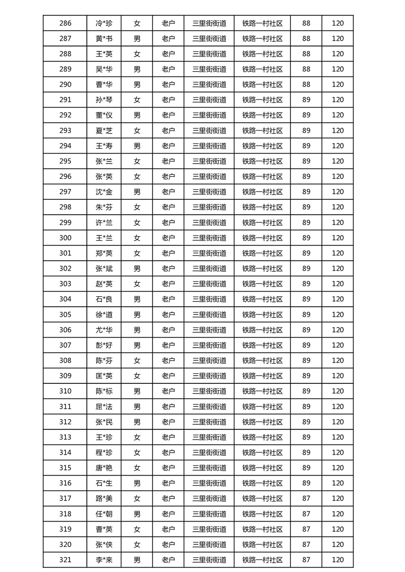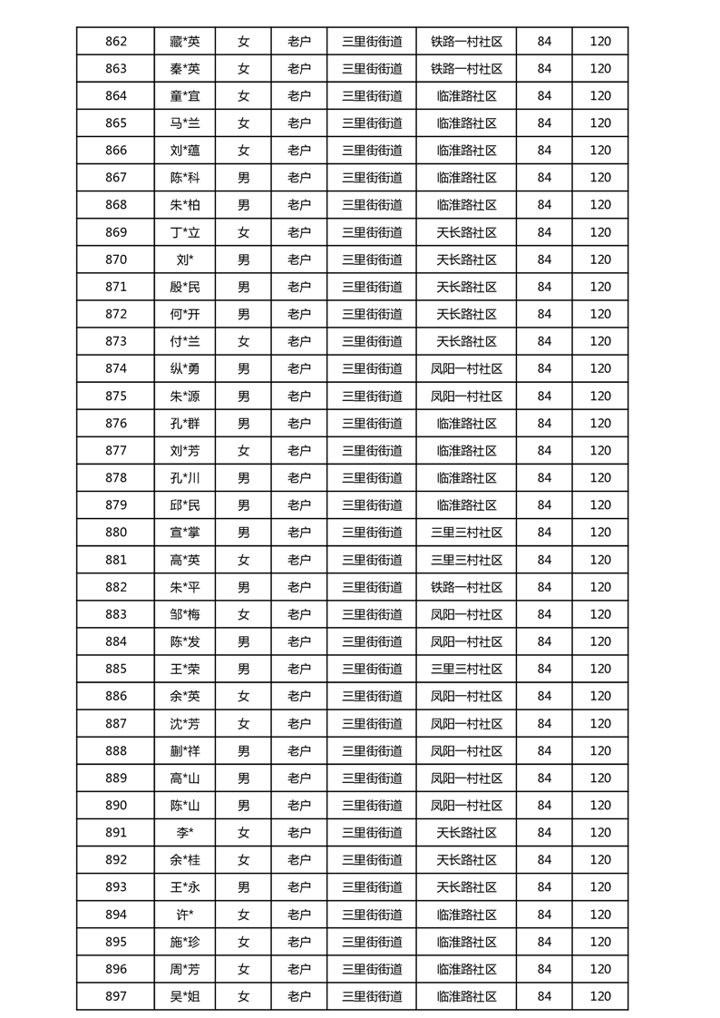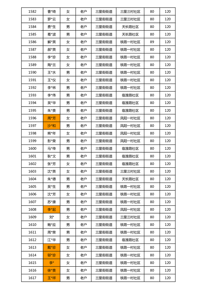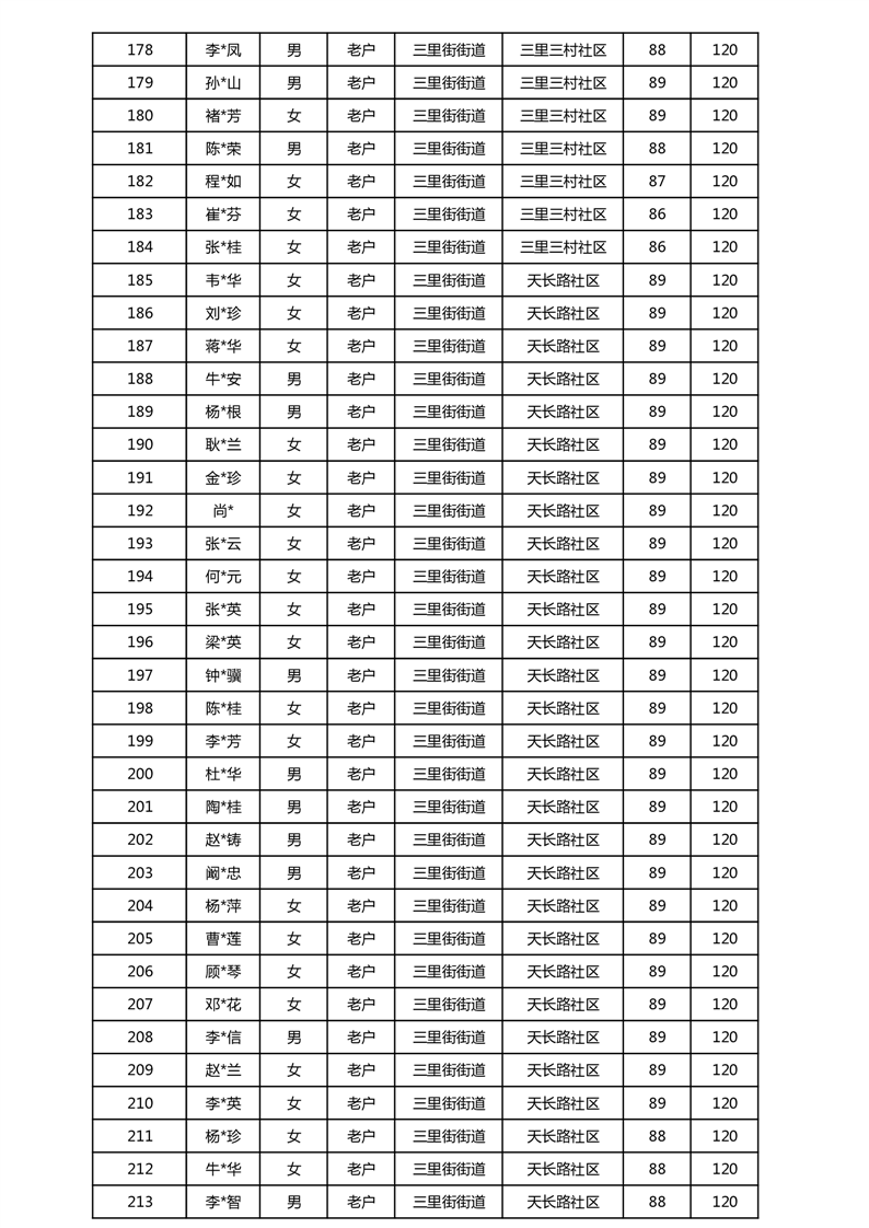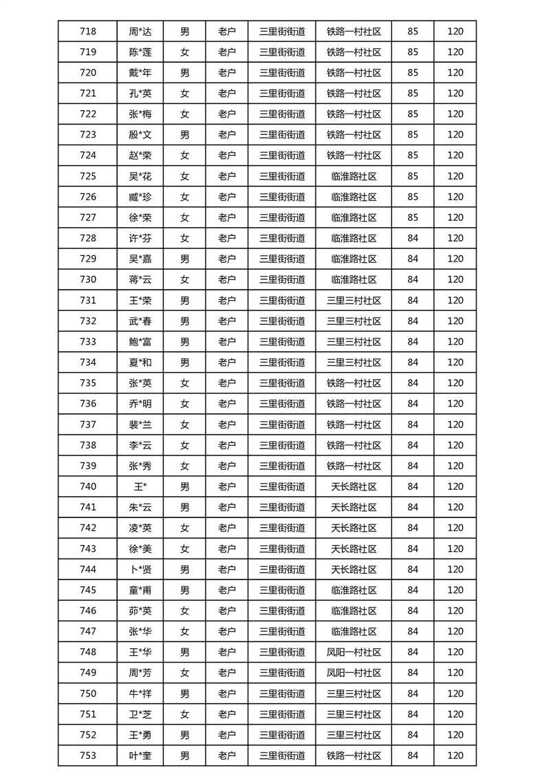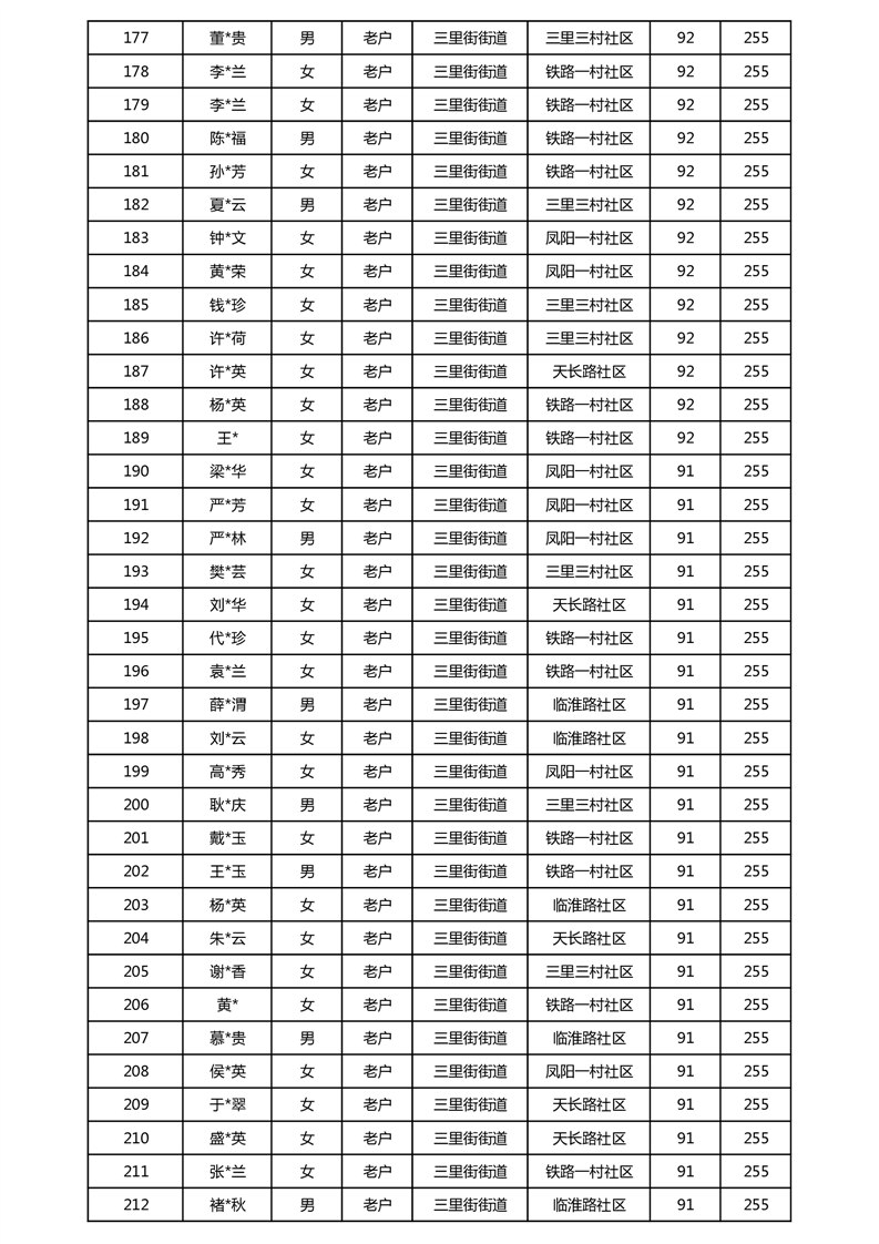 【分配结果】(2025年5月)三里街街道80周岁以上高龄津贴发放表
