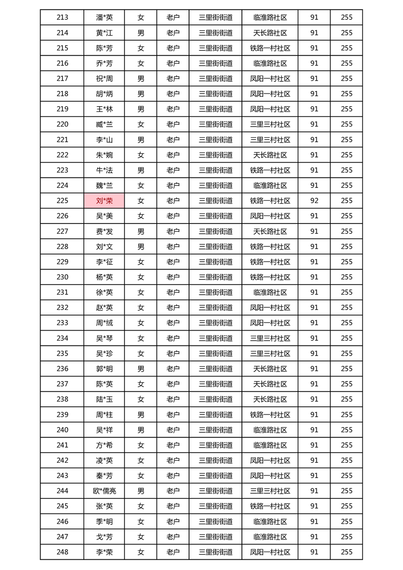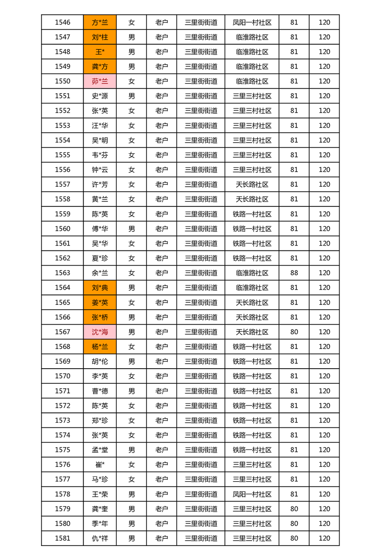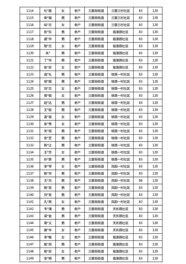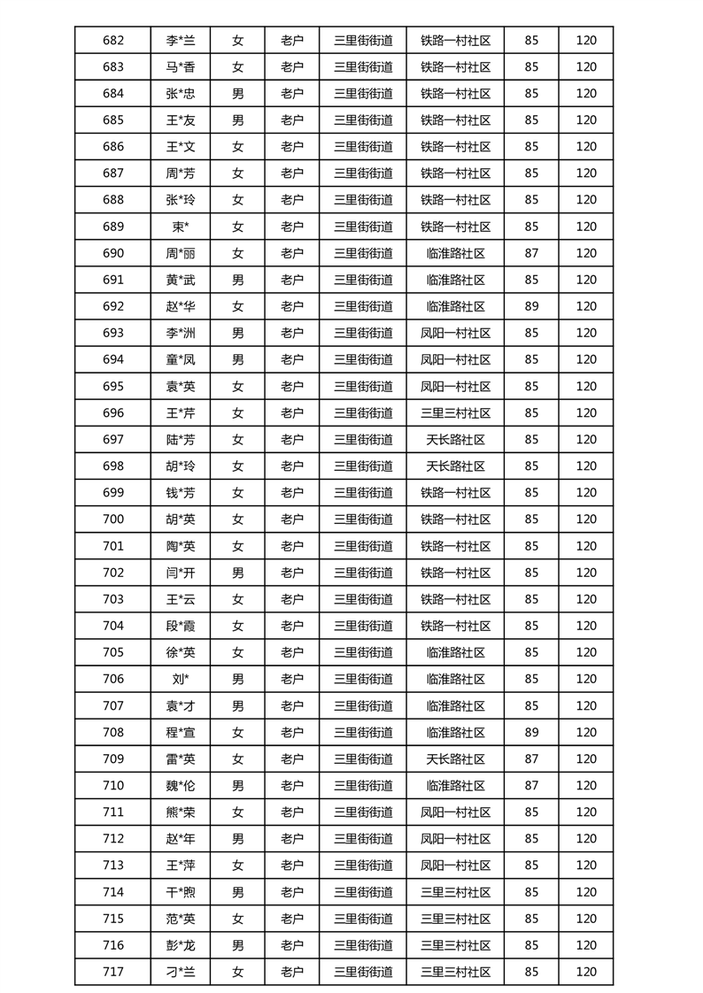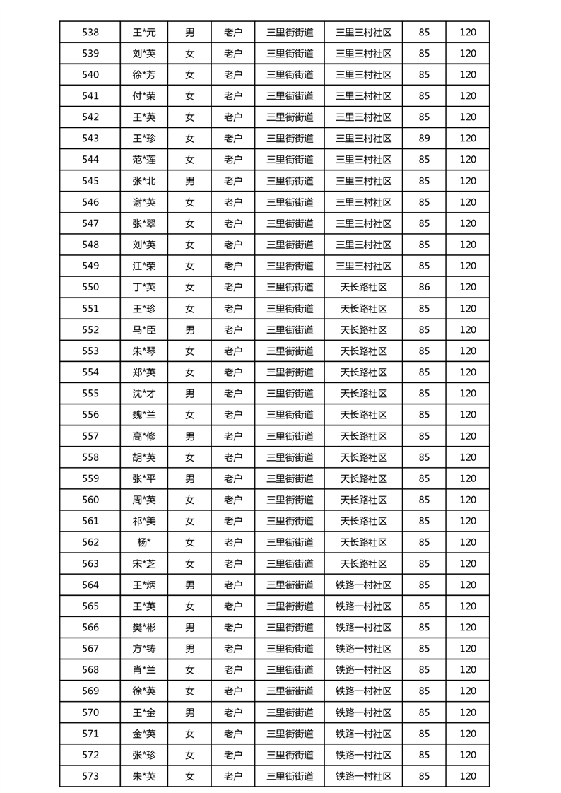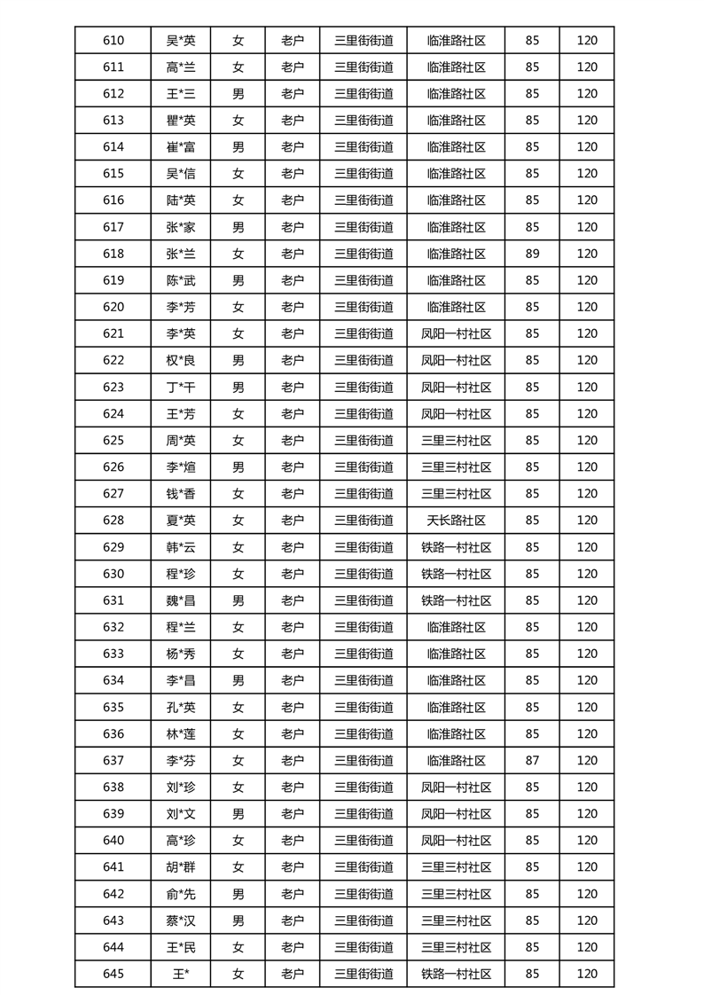 【分配结果】(2025年5月)三里街街道80周岁以上高龄津贴发放表