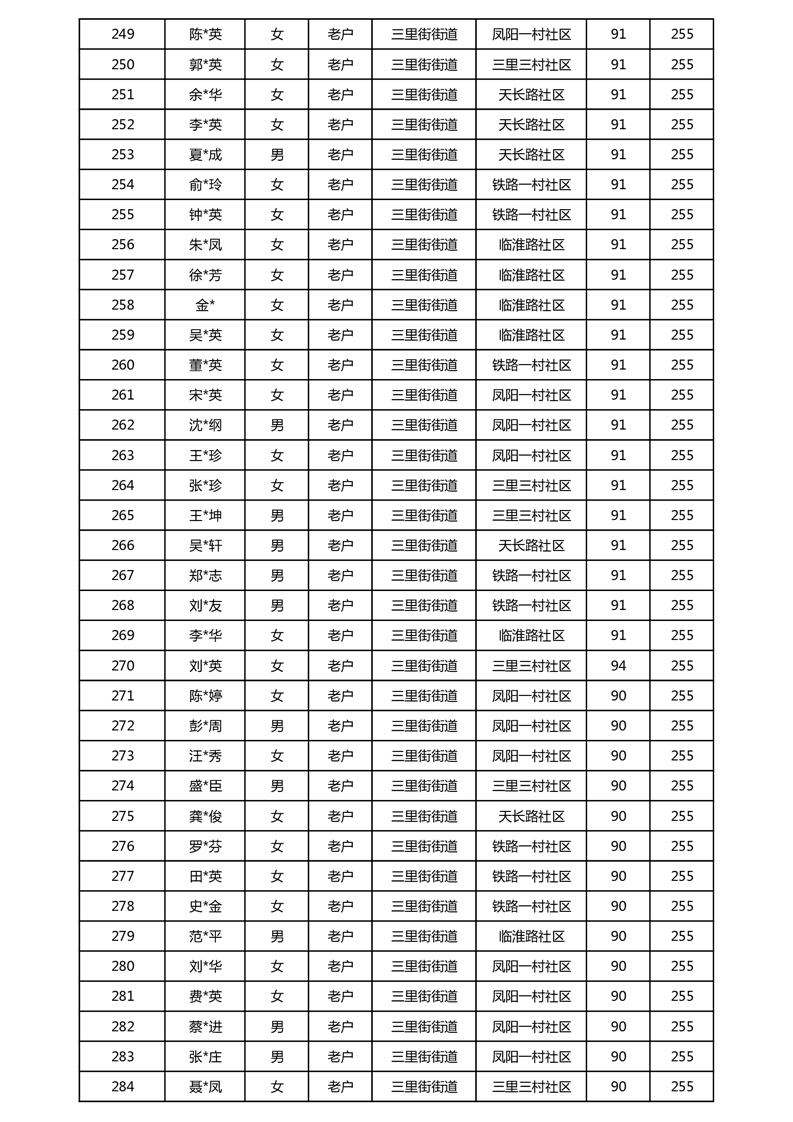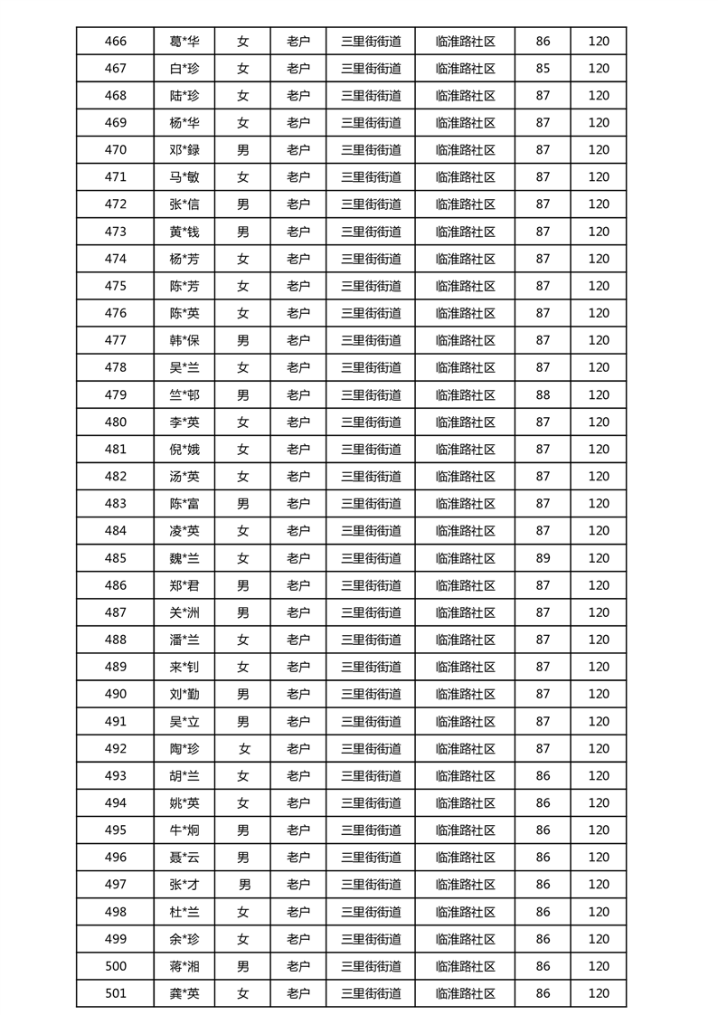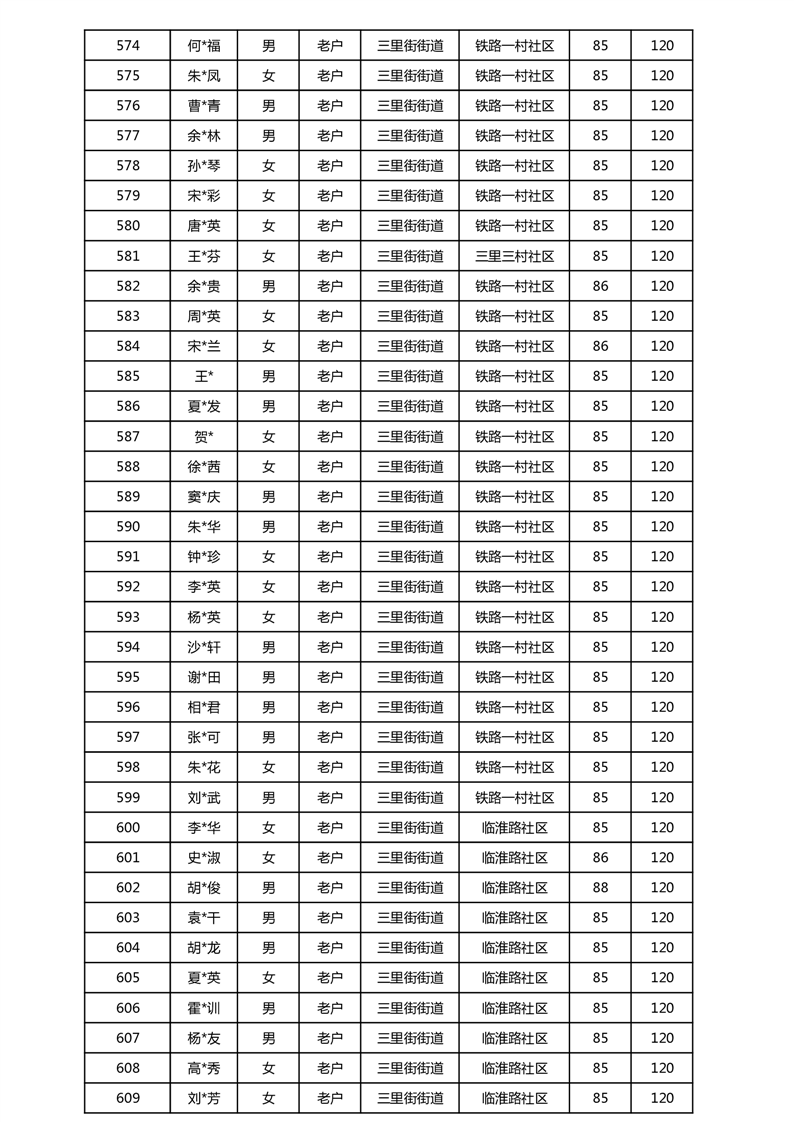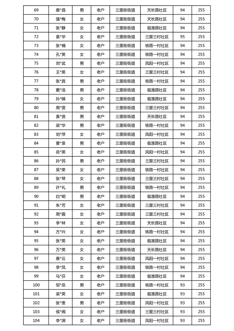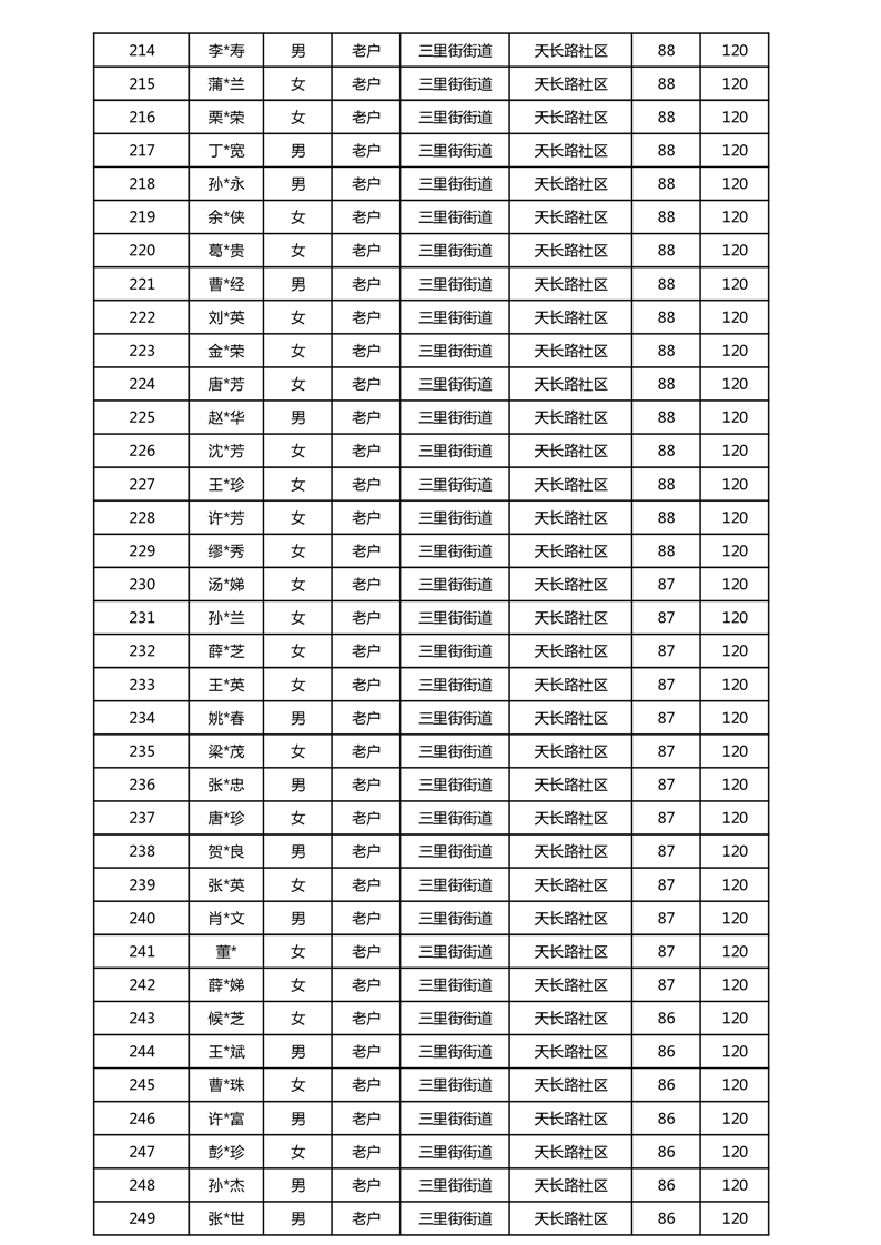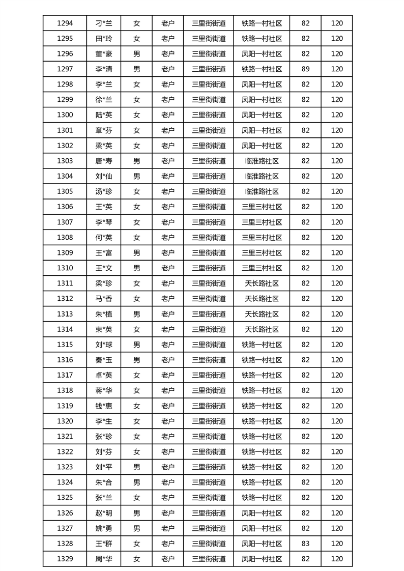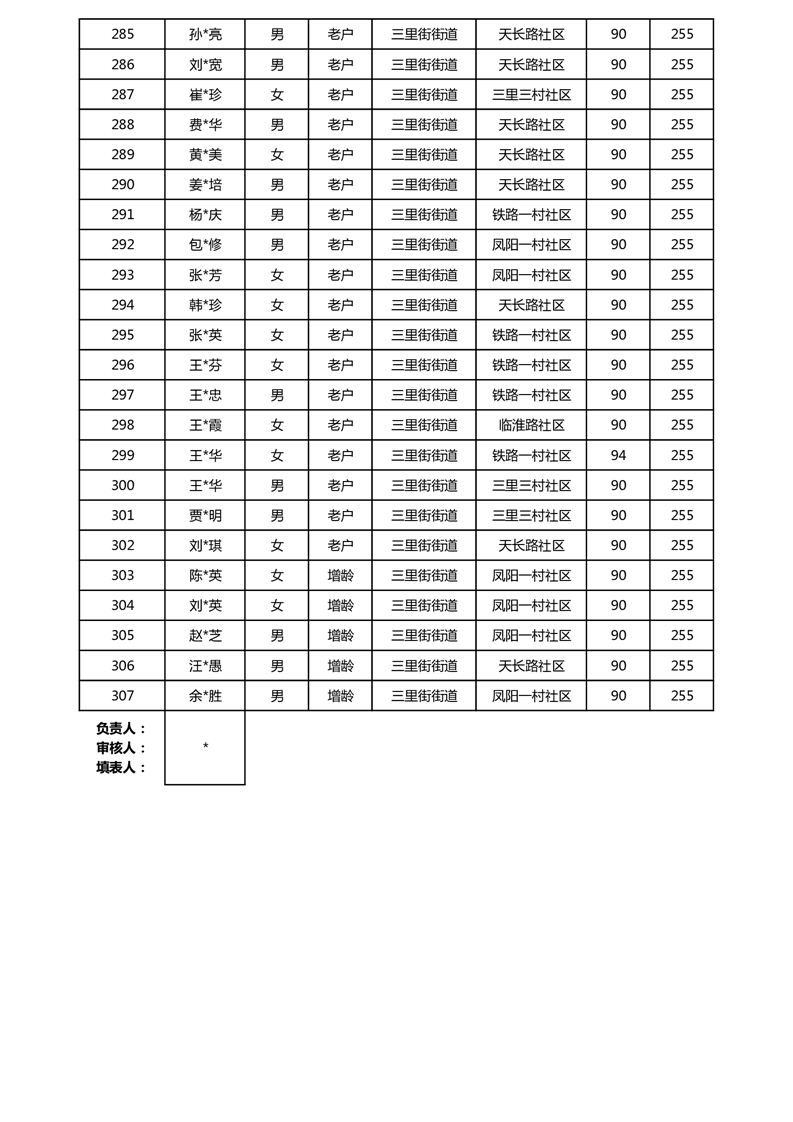 【分配结果】(2025年5月)三里街街道80周岁以上高龄津贴发放表