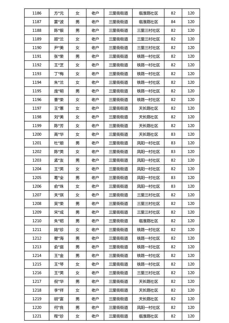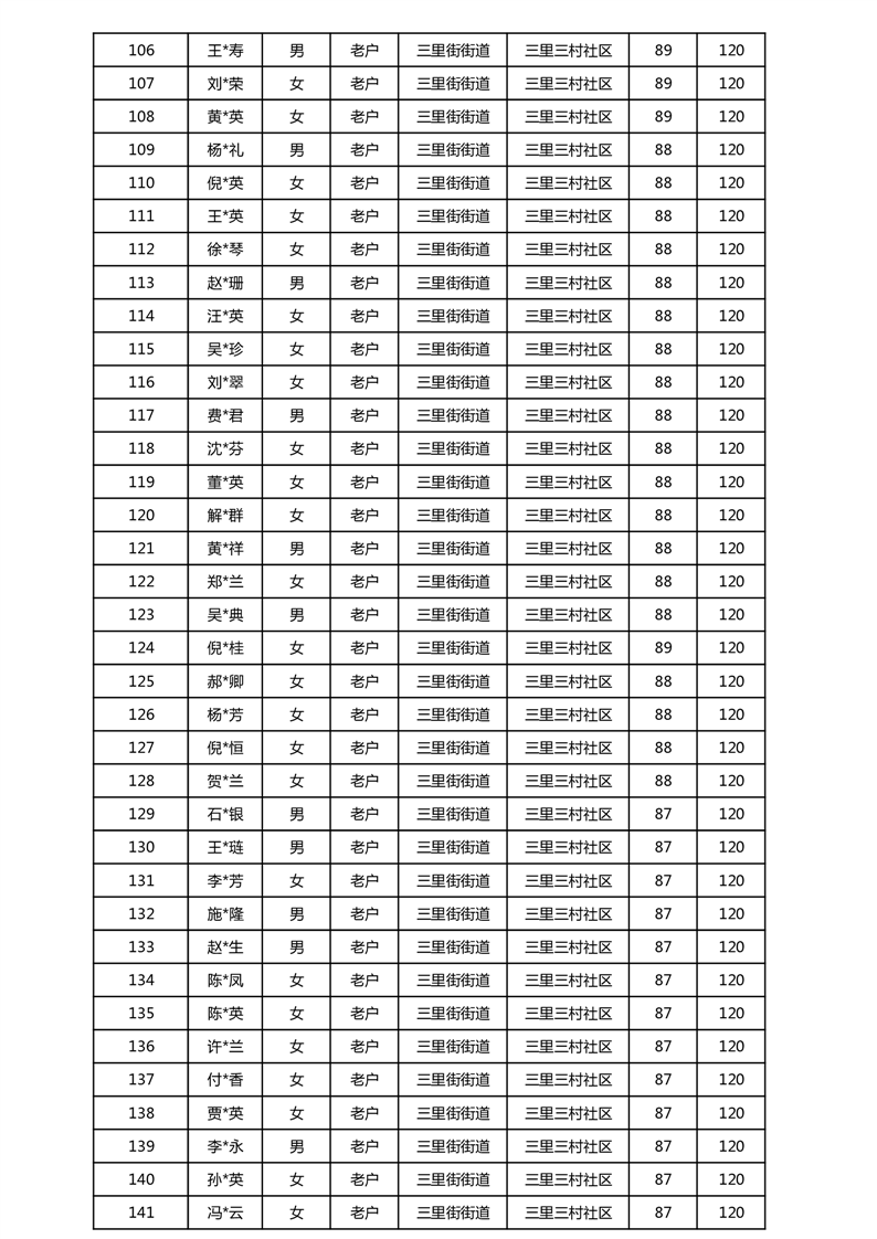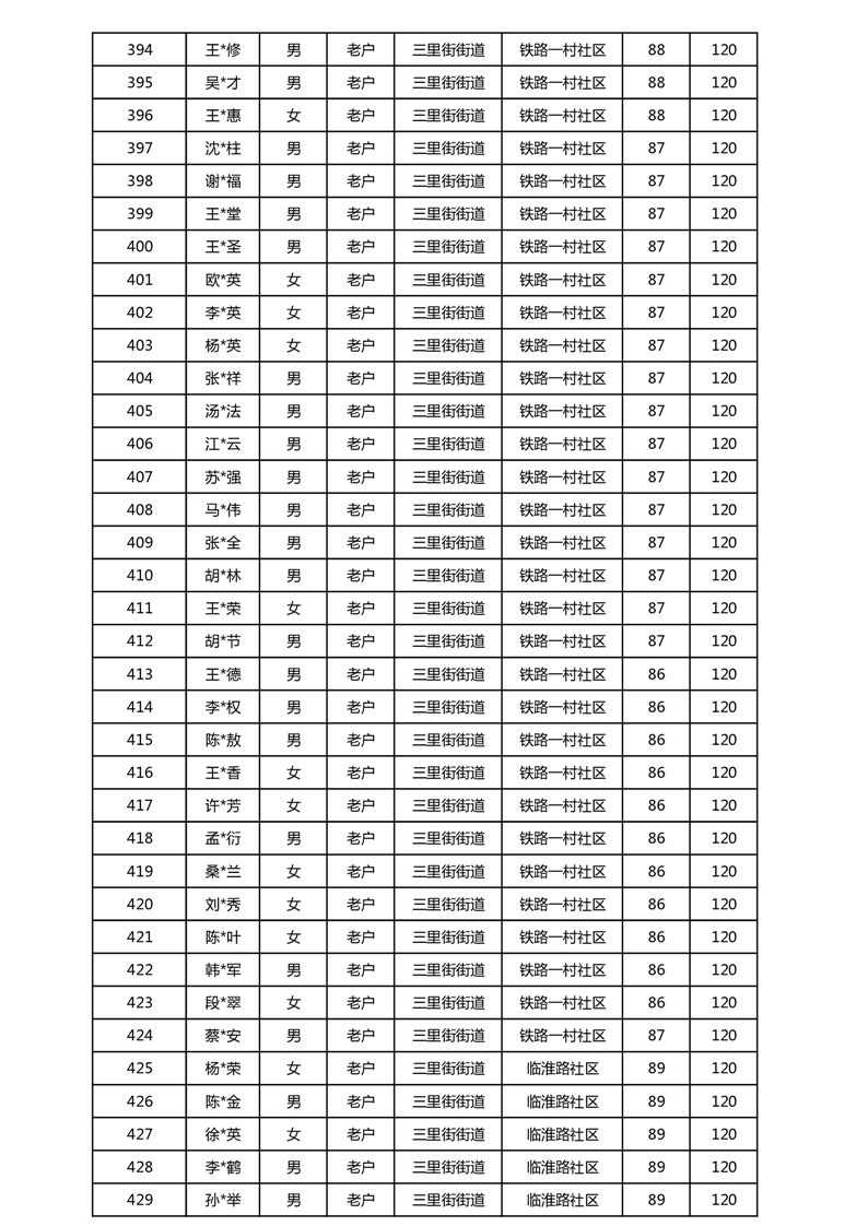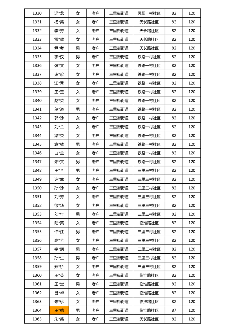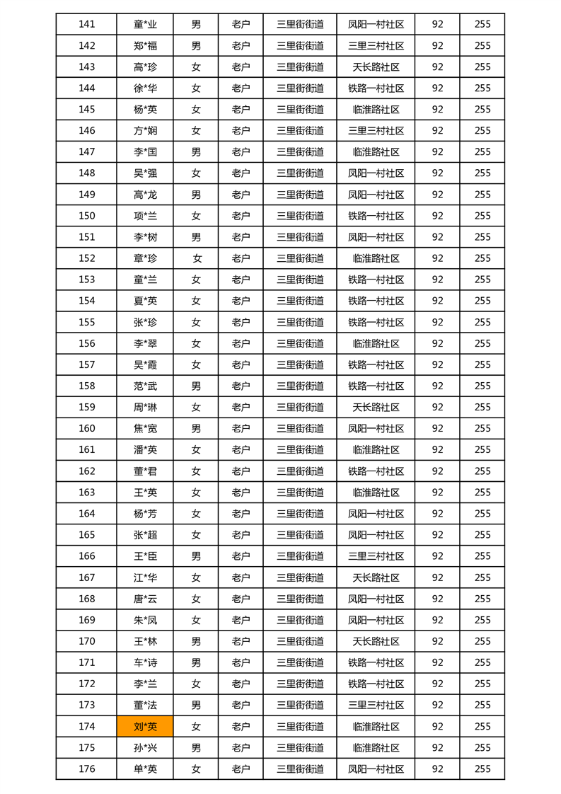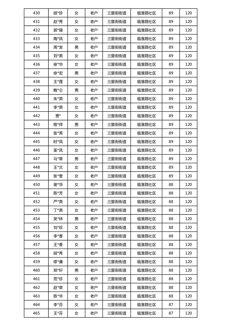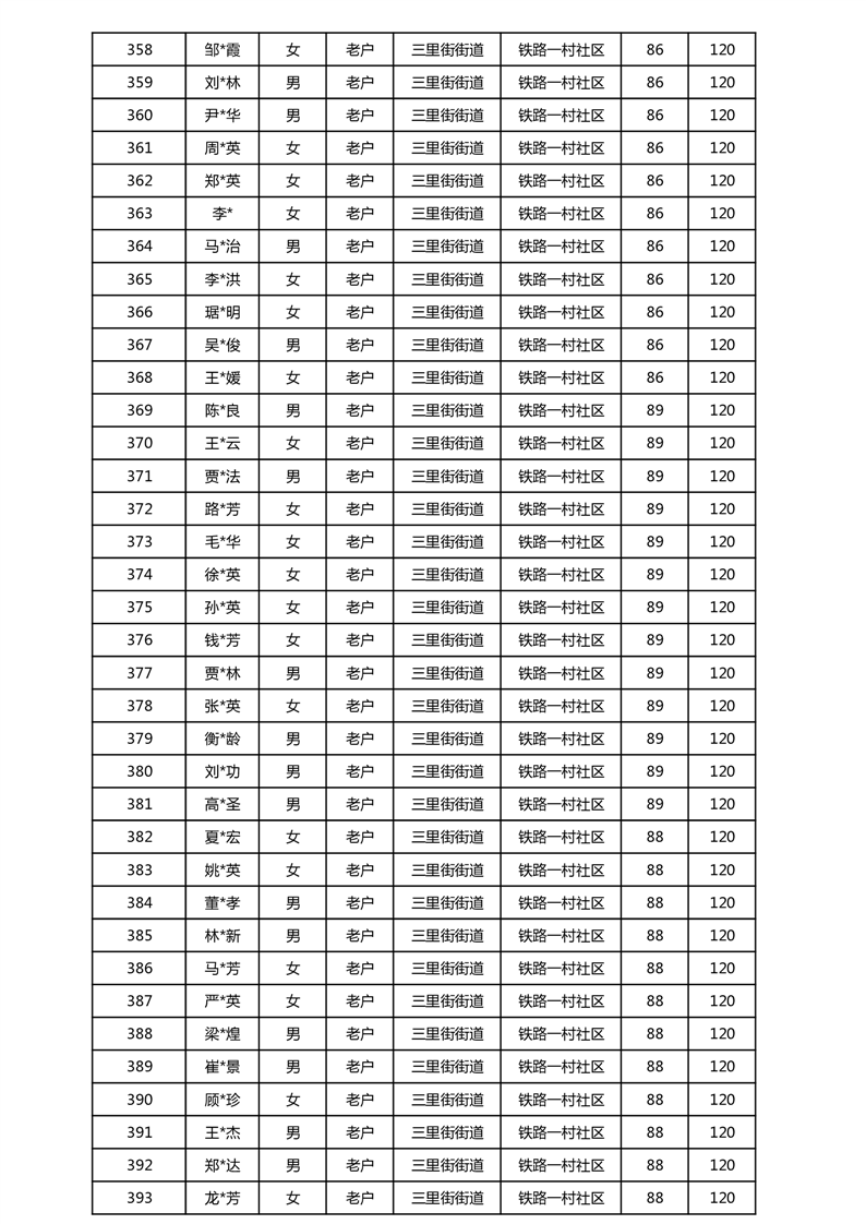 【分配结果】(2025年5月)三里街街道80周岁以上高龄津贴发放表