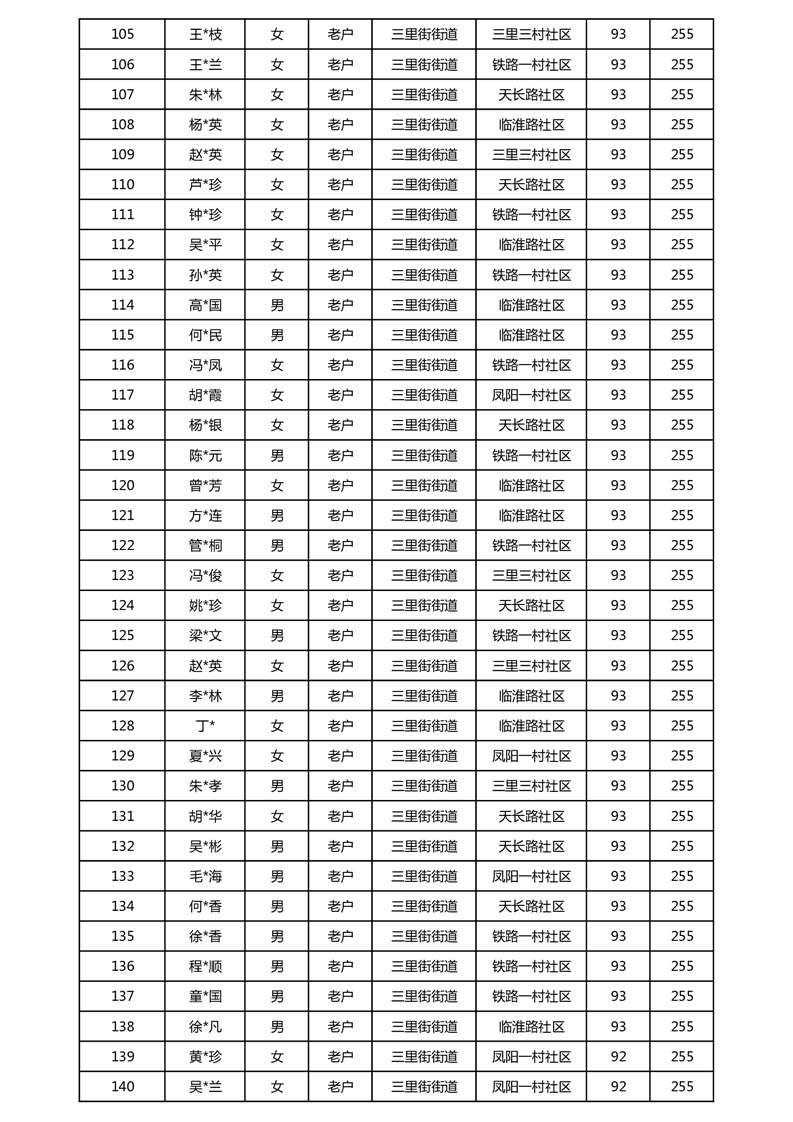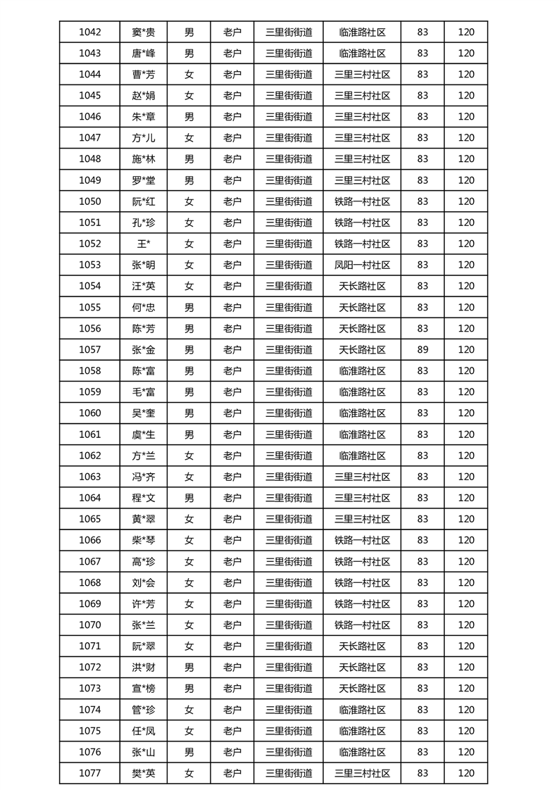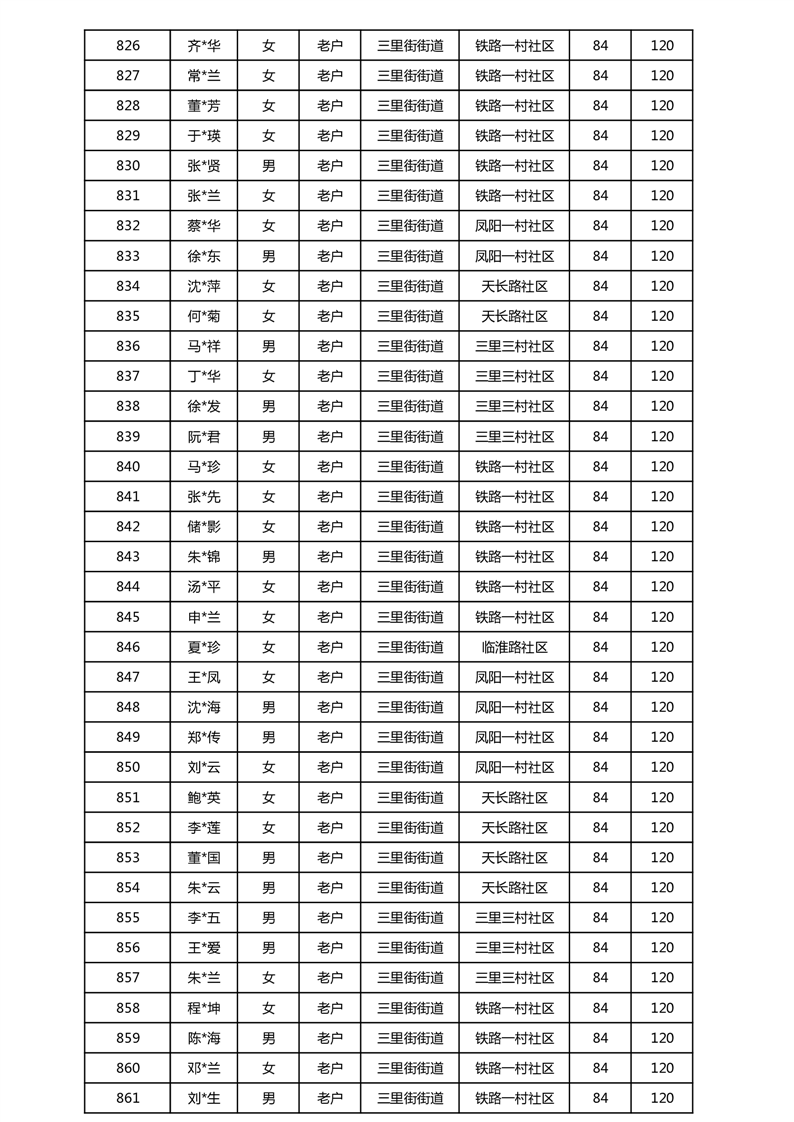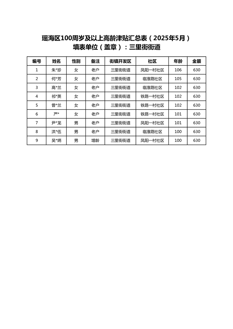 【分配结果】(2025年5月)三里街街道80周岁以上高龄津贴发放表 |