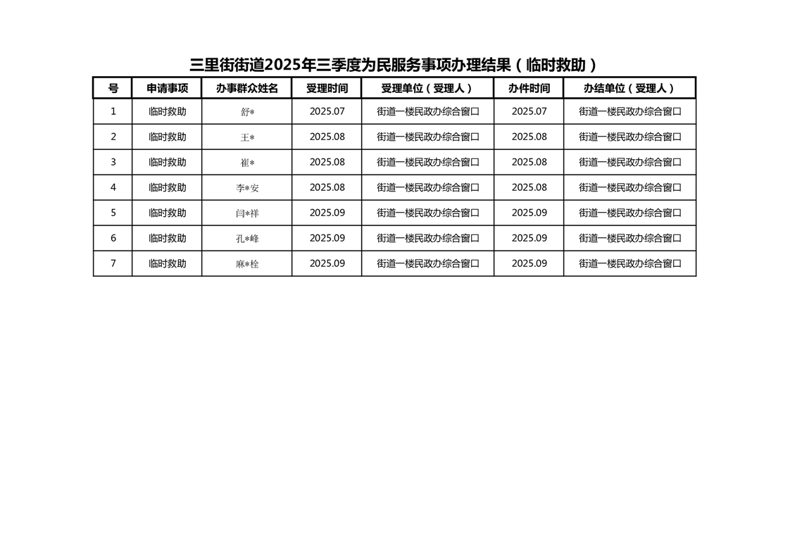 【权利运行结果】2025年第三季度三里街为民服务事项办理结果统计表
