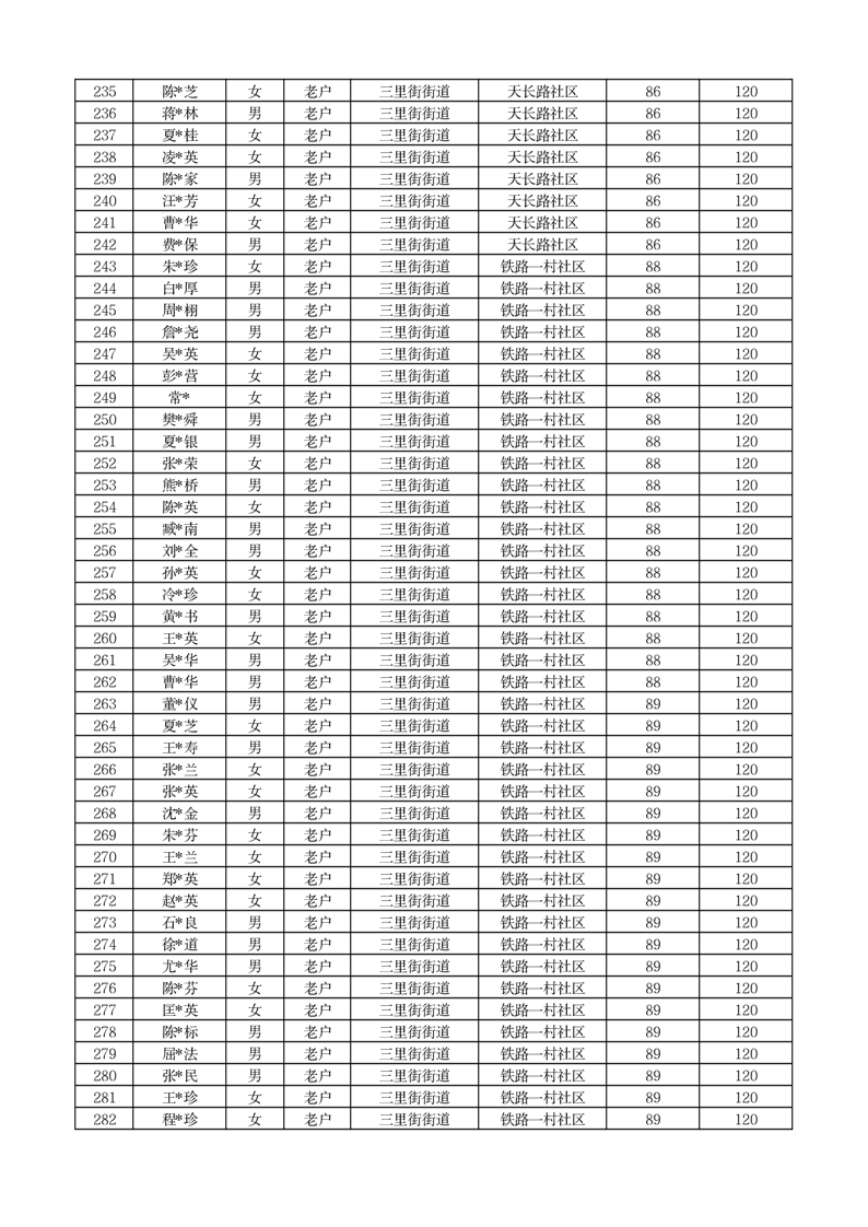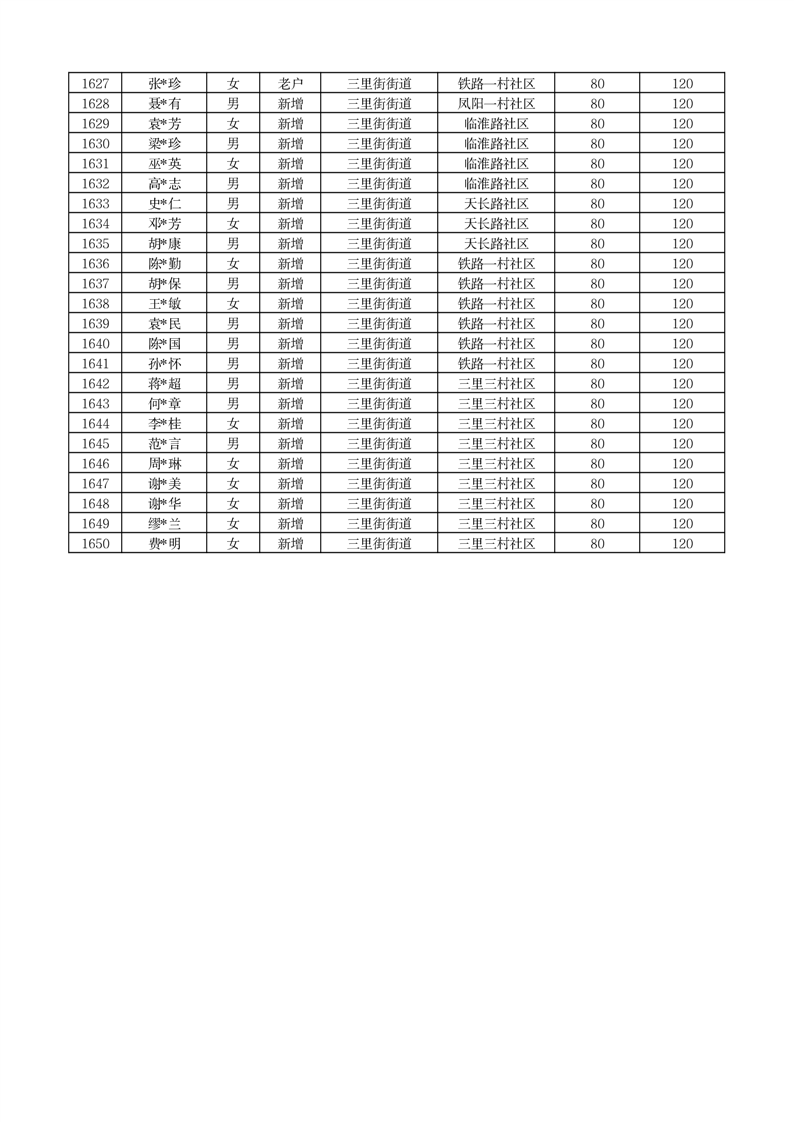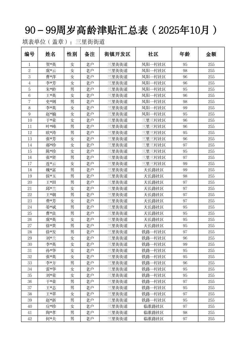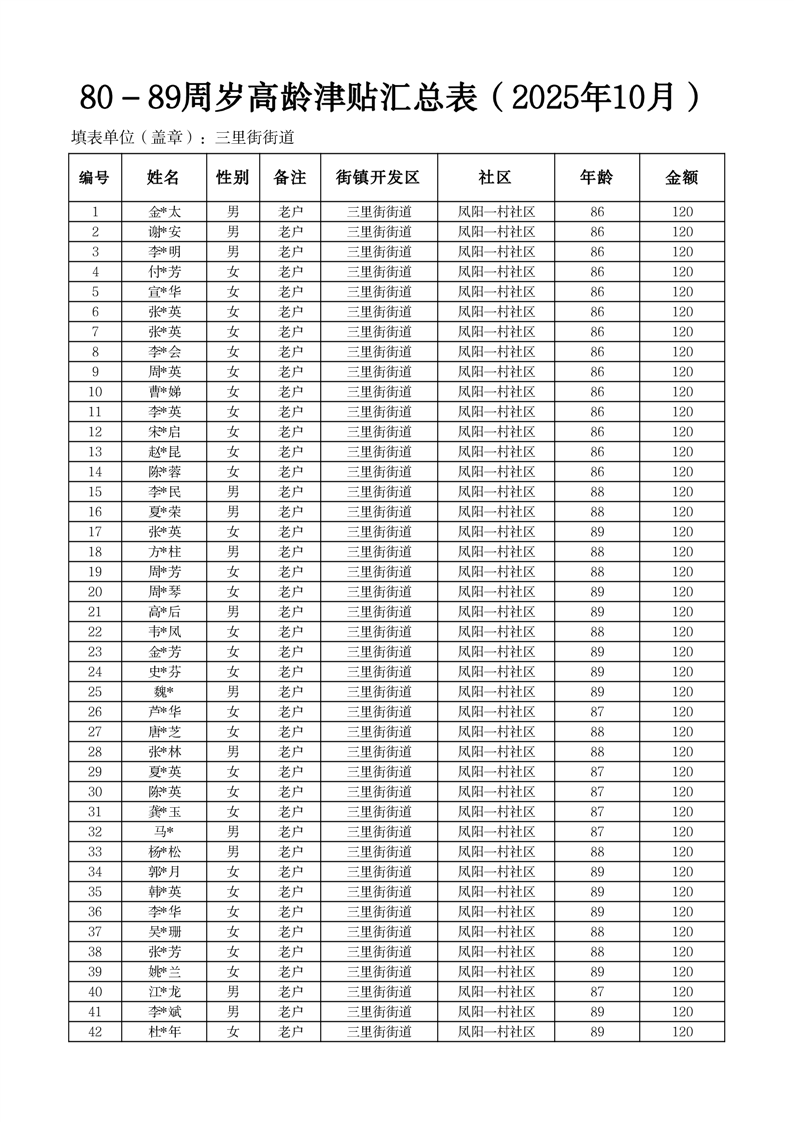 【分配结果】(2025年10月)三里街街道80周岁以上高龄津贴发放表 |