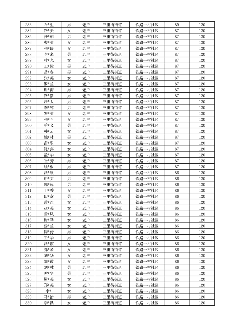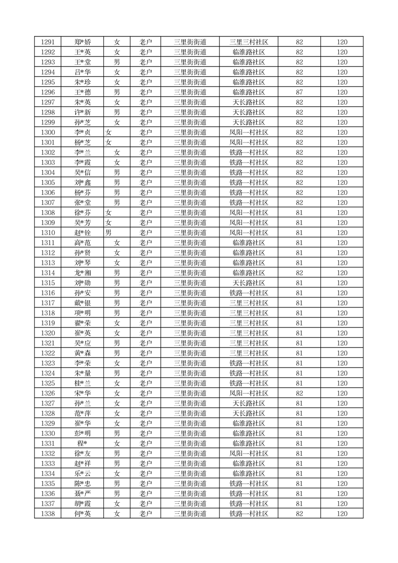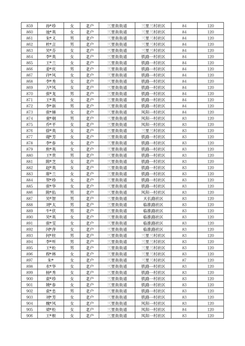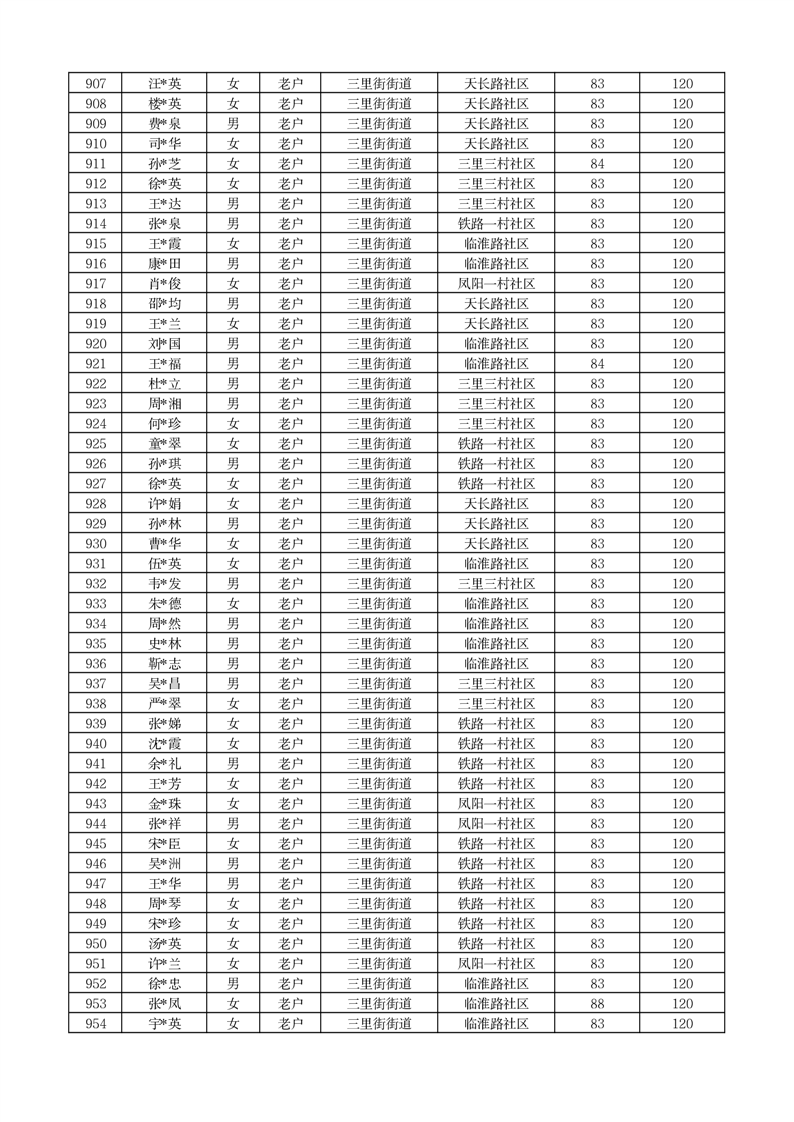 【分配结果】(2025年10月)三里街街道80周岁以上高龄津贴发放表 |