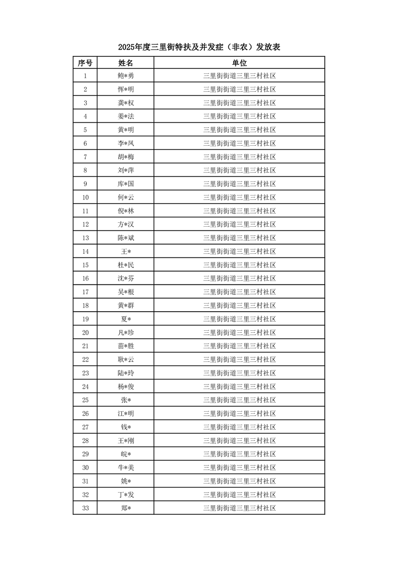 【分配结果】三里街街道2025年一次性奖励发放情况 |