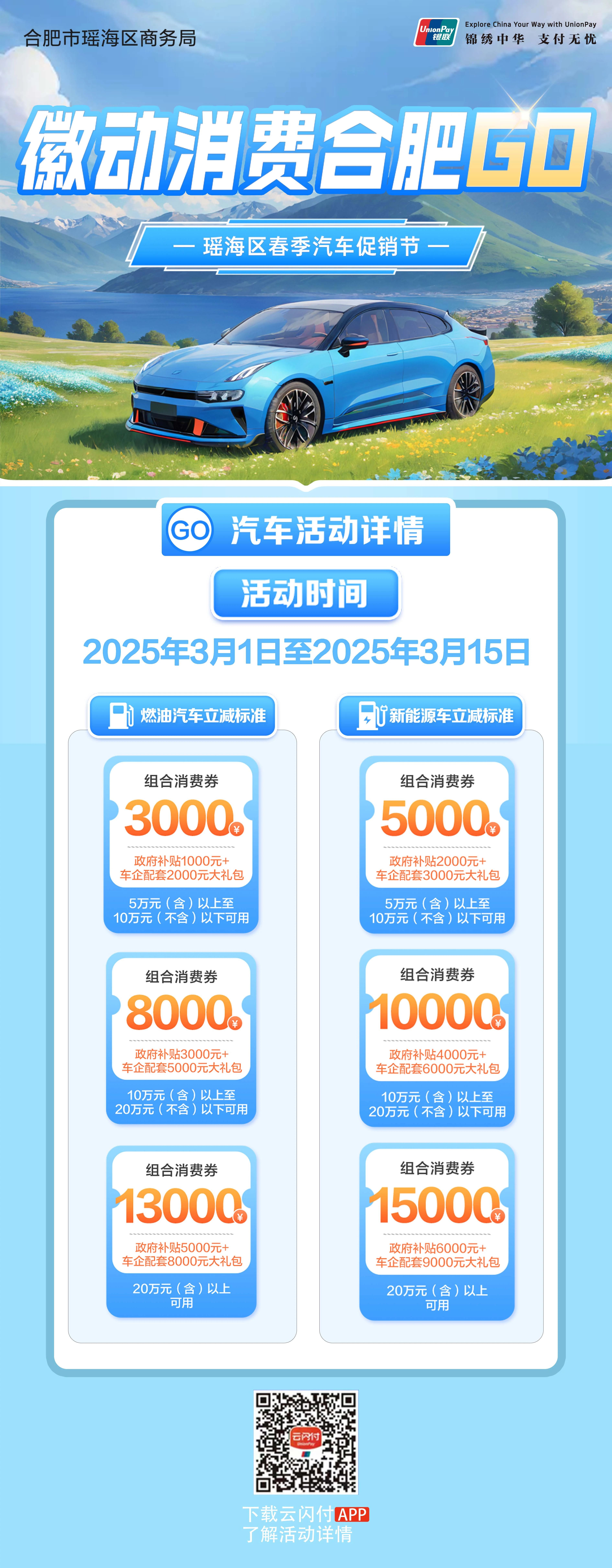 本次促销活动是瑶海区2025“徽动消费·合肥GO”主题活动的开年重头戏,更是历年补贴力度最大的一次!以前所未有的优惠力度直接补贴每一位购车者,进一步提振消费信心。下一步,瑶海区将持续开展系列促销活动,推动消费品“以旧换新”政策不断扩围,精准化满足消费者需求,以切实福利惠及广大消费者。