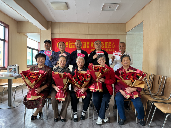 “我能想到最浪漫的事,就是和你一起慢慢变老.....”随着优美的音乐响起,屏幕上播放着感人的画面,五对金婚、银婚老人相继走上台前,讲述从相知、相爱、相伴、相守的点点滴滴,重温风雨同舟的激情岁月。这五对老人中,结婚时间最长的61年,最短的也有40余年,几十年的风风雨雨,让他们从靓丽红颜变满头白发,从朝气蓬勃到睿智从容,用时间和行动诠释了幸福婚姻的真谛。活动的最后,志愿者还为金婚、银婚老人送上了鲜花和祝福。