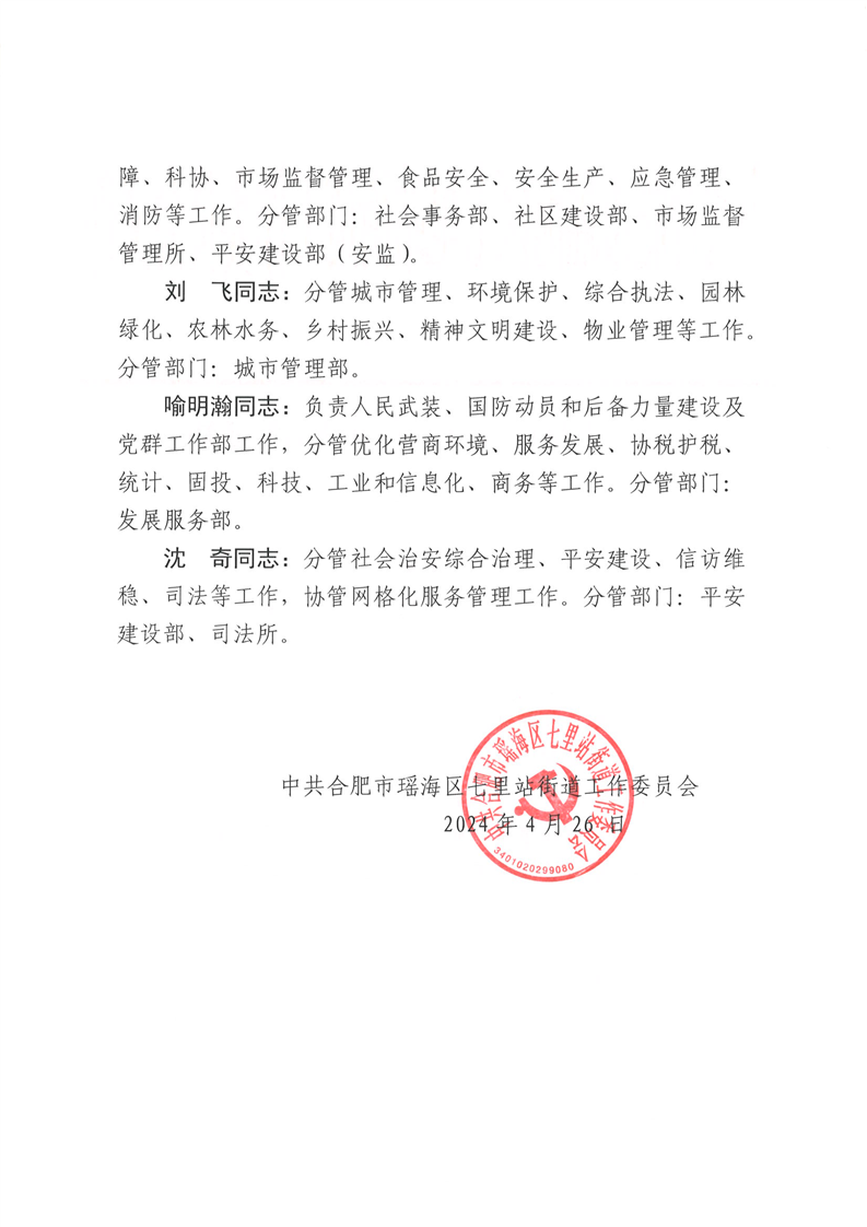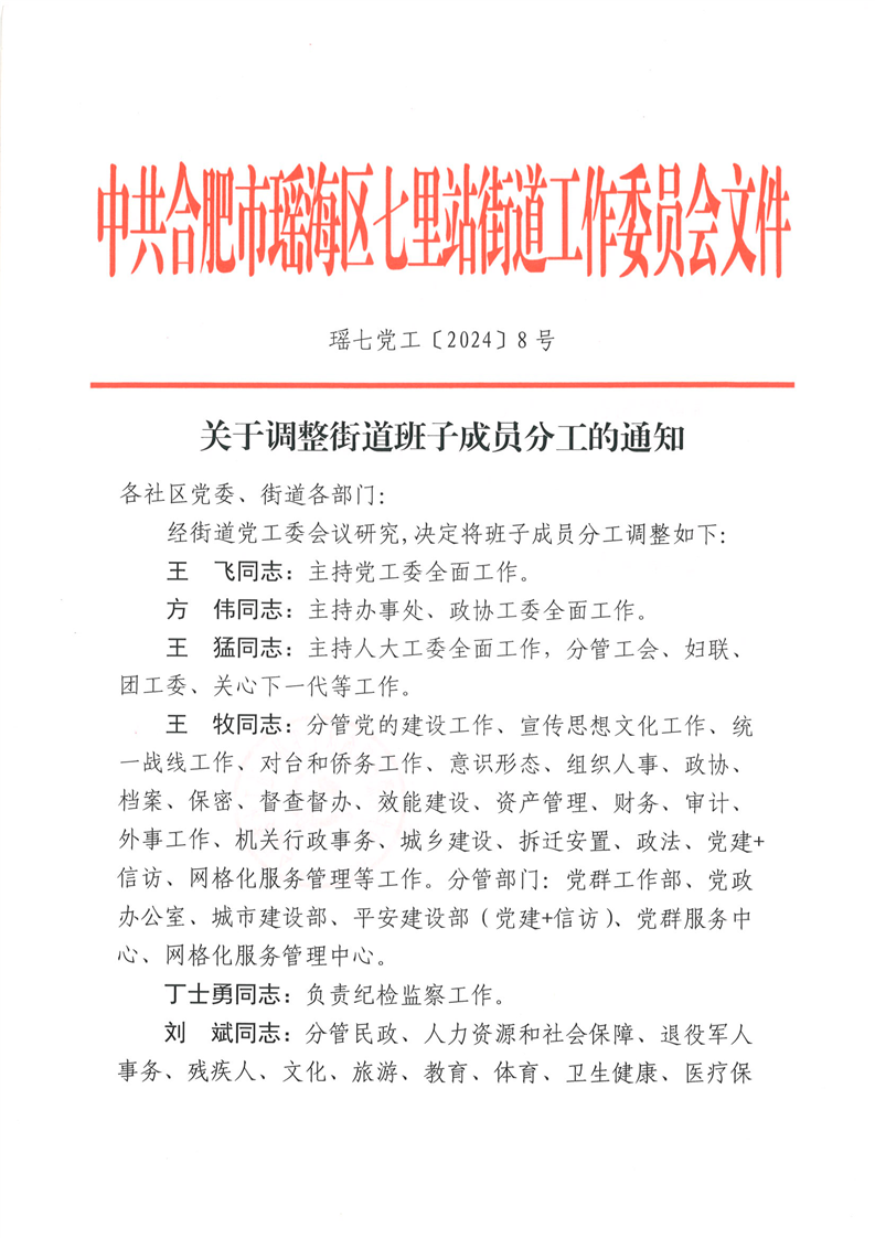 关于调整街道班子成员分工的通知
