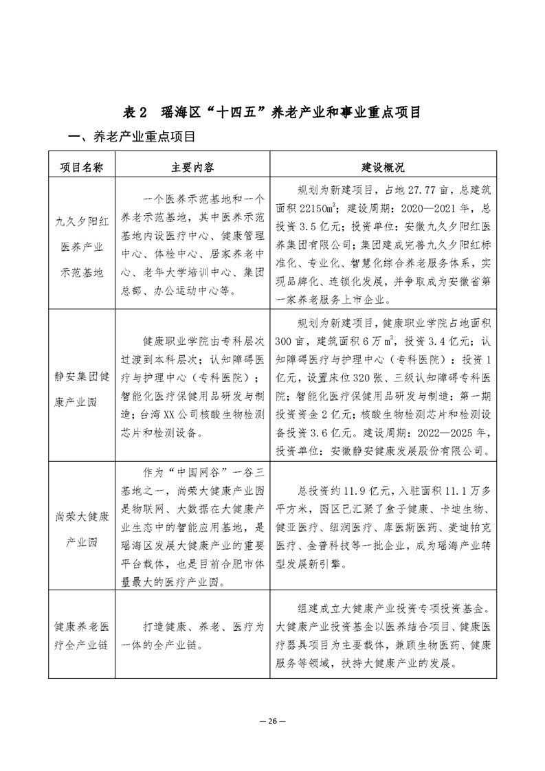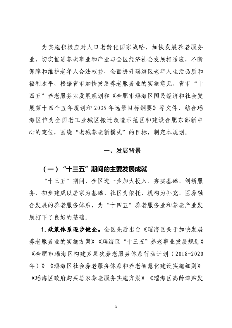 瑶海区“十四五”养老产业和事业发展规划 |