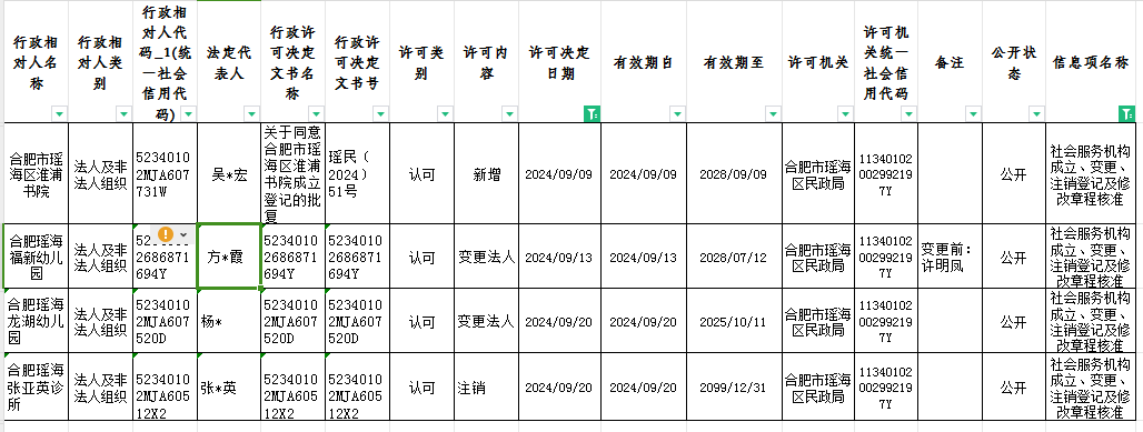 区民政局9月份民办非企业成立、变更、注销审批情况