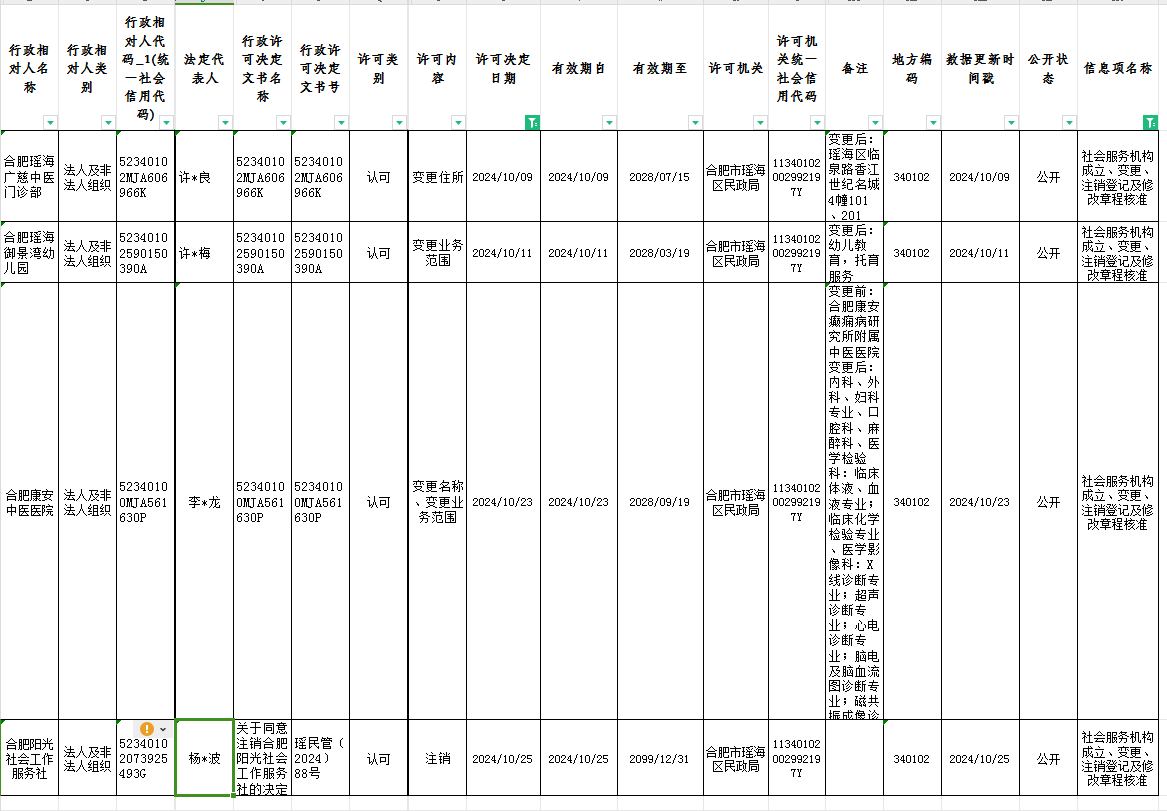 区民政局10月份民办非企业成立、变更、注销审批情况