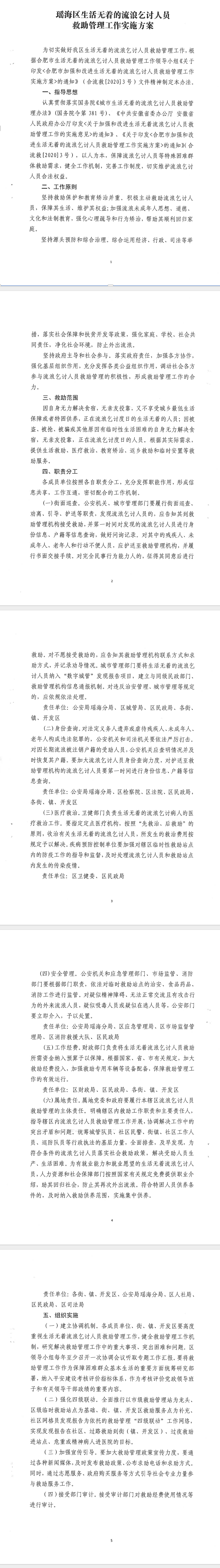 《瑶海区生活无着的流浪乞讨人员救助管理工作实施方案》(瑶流救〔2020〕2号) |