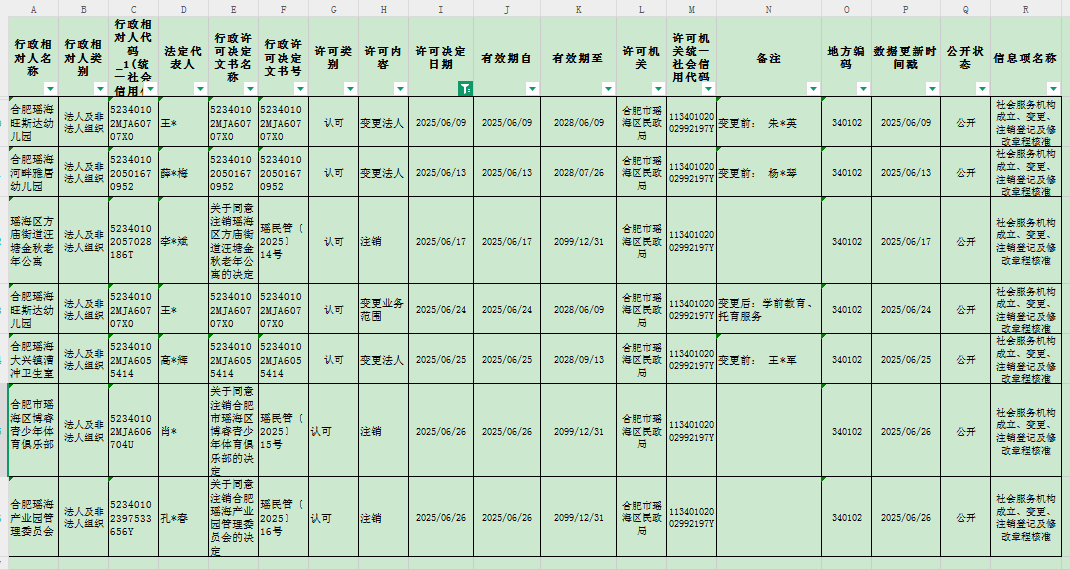 区民政局2025年6月份民办非企业成立、变更、注销审批情况 |