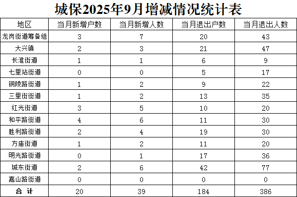 瑶海区城区低保增减情况统计表(2025年9月) |