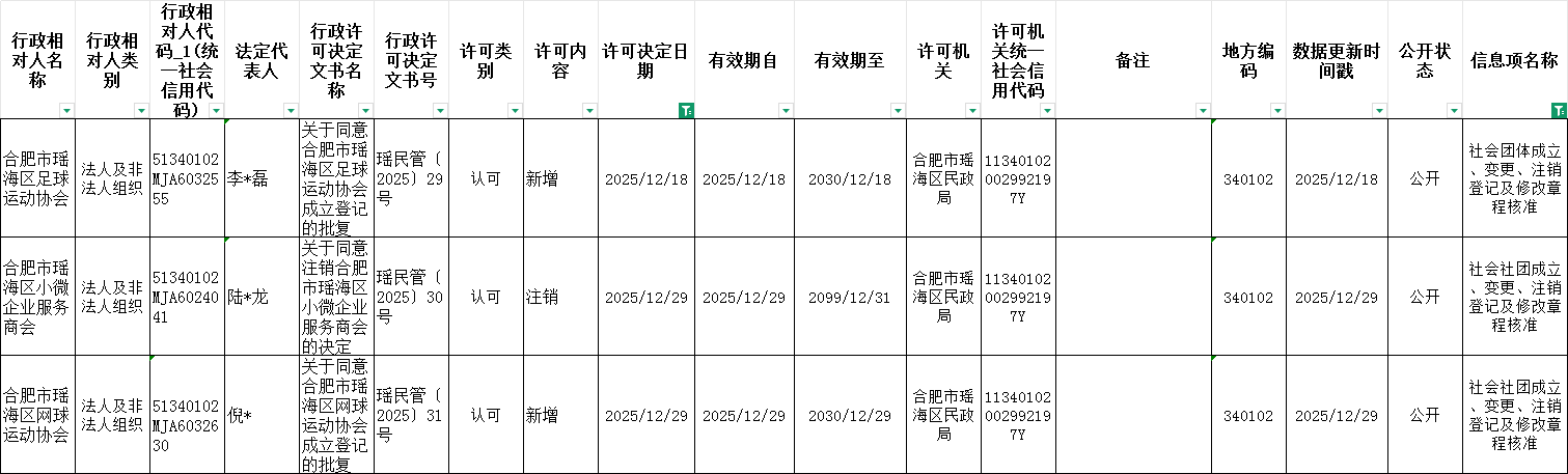 区民政局12月份社会团体成立、变更、注销审批情况 |