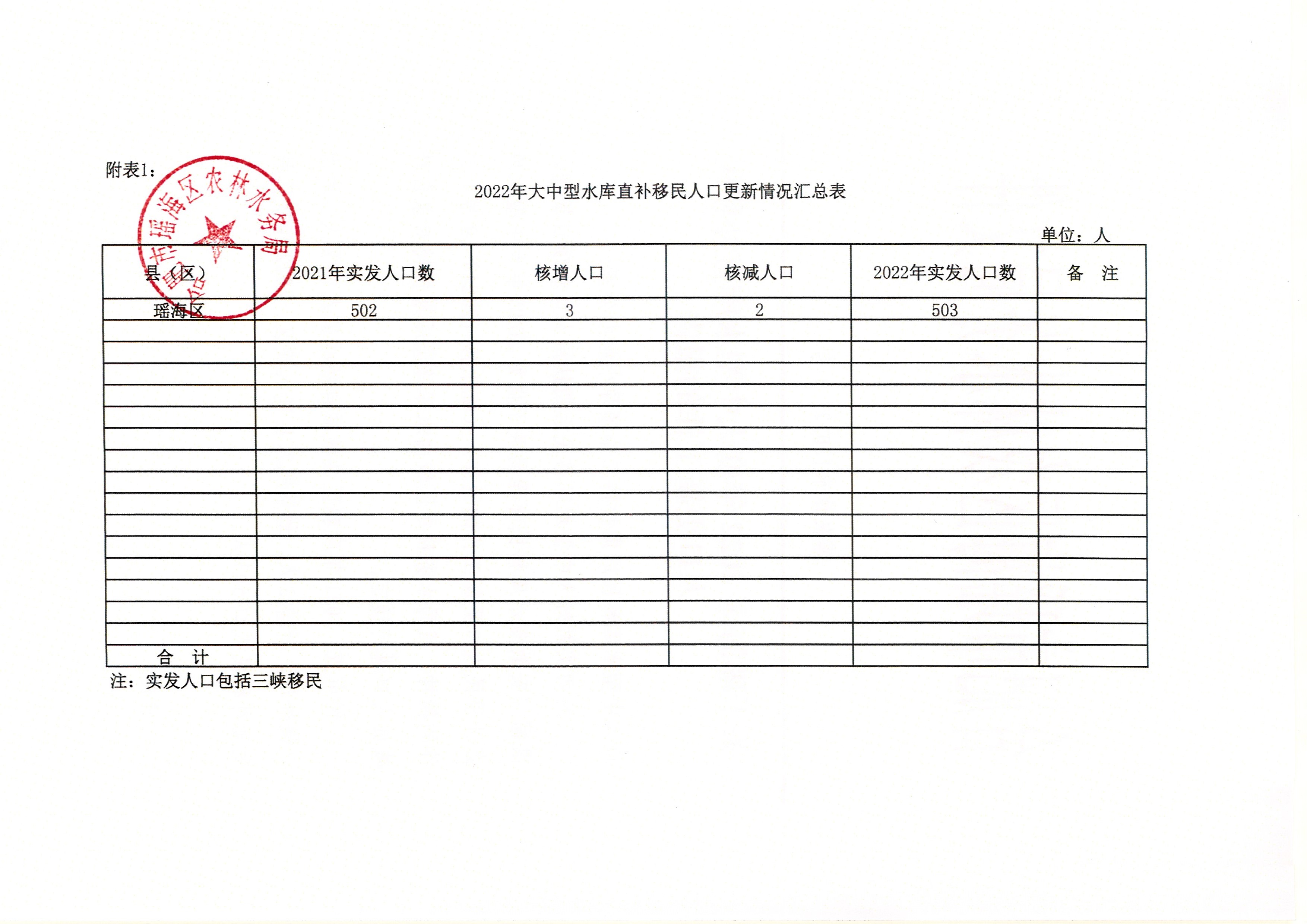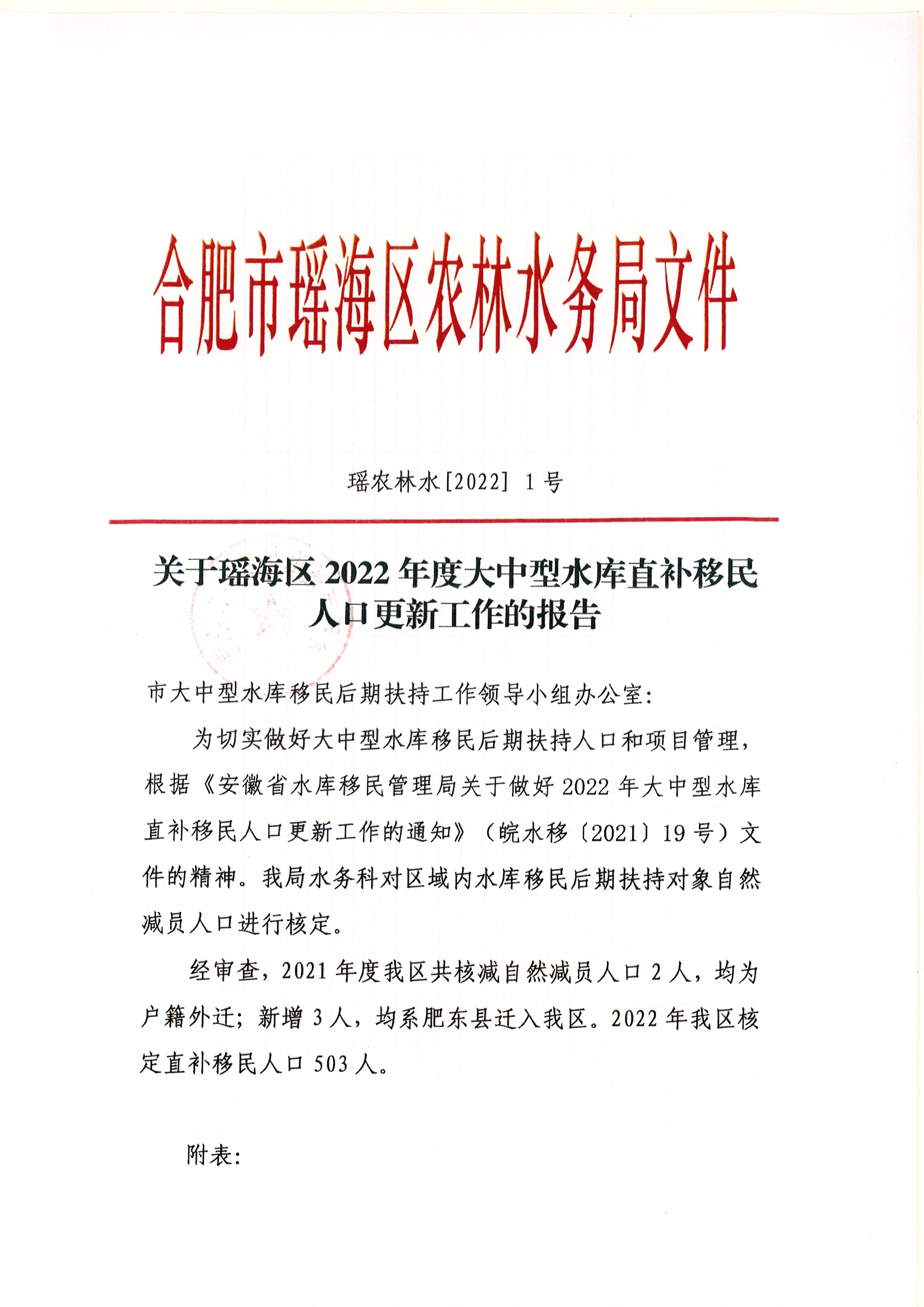 关于瑶海区2022年度大中型水库直补移民人口更新工作的报告