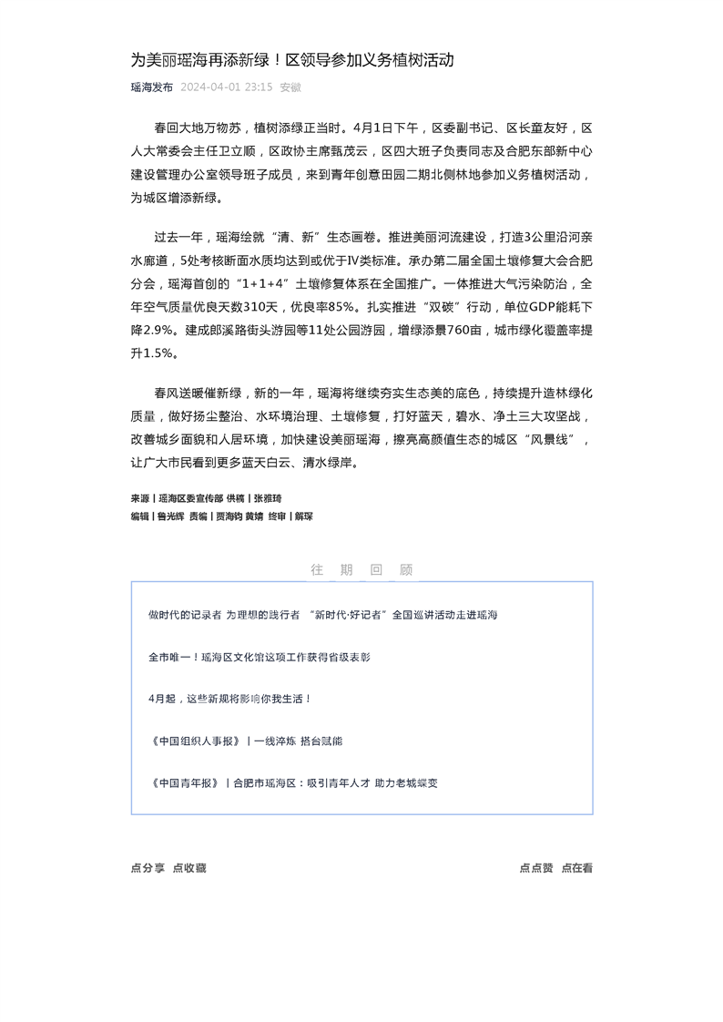 为美丽瑶海再添新绿!区领导参加义务植树活动 |