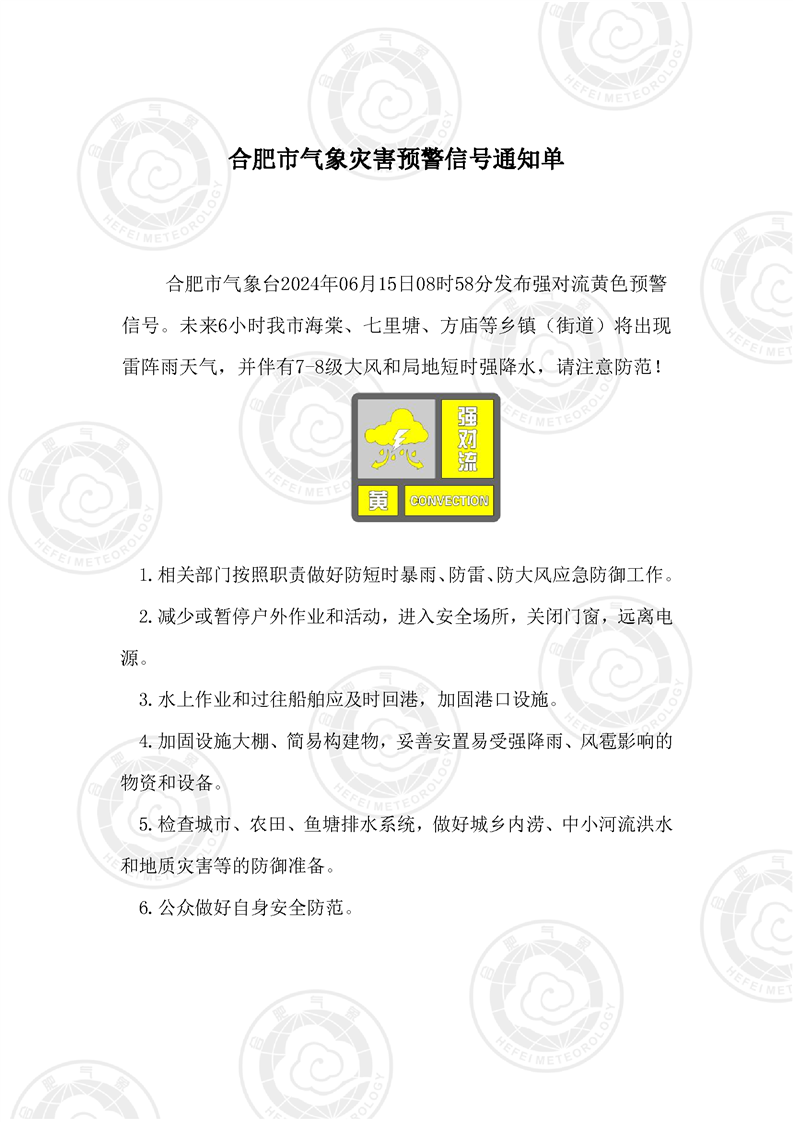 强对流黄色预警信号通知单(6月15日) |