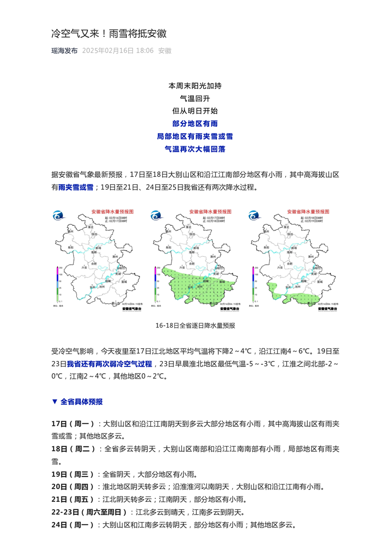 冷空气又来!雨雪将抵安徽 |