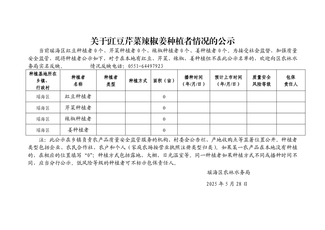 关于豇豆芹菜辣椒姜种植者情况的公示