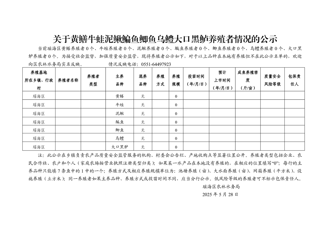 关于黄鳝牛蛙泥鳅鳊鱼鲫鱼乌鳢大口黑鲈养殖者情况的公示 |