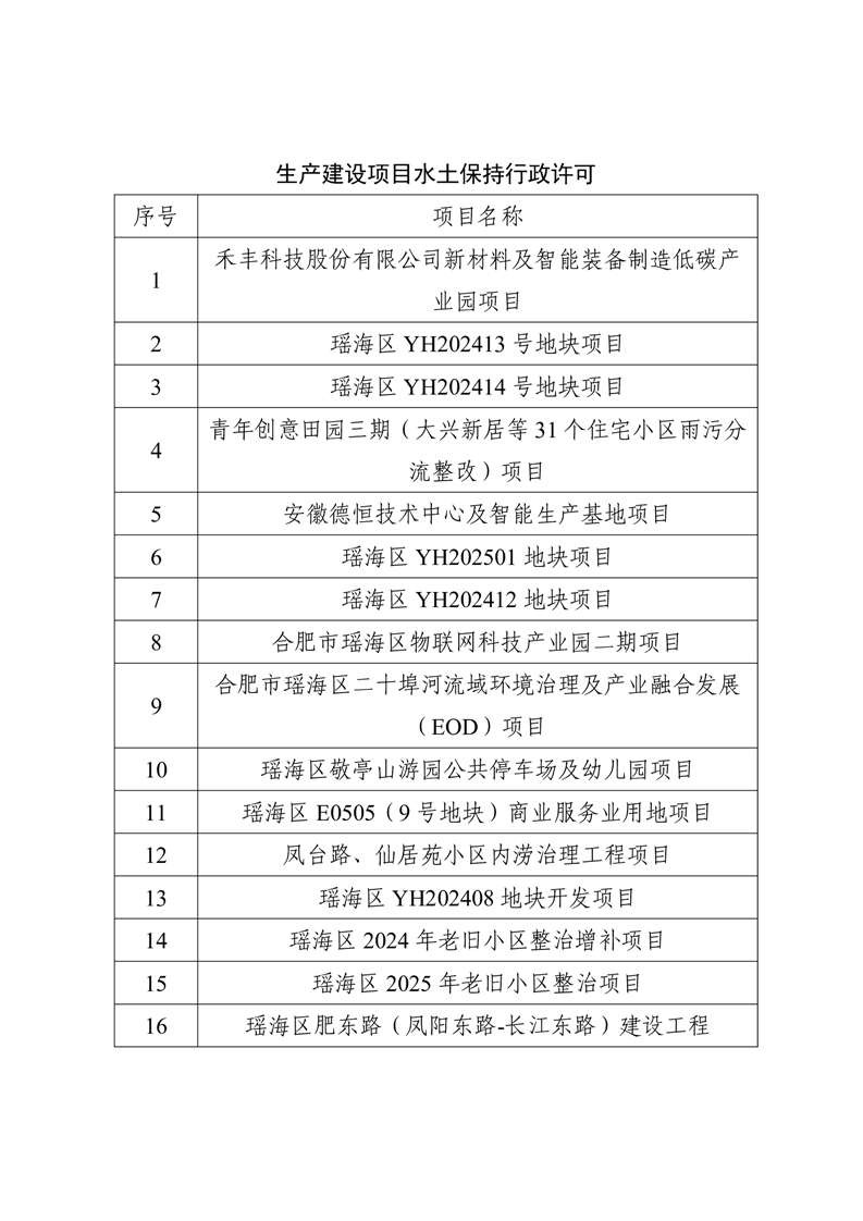 瑶海区农林水局2025年7月-12月生产建设项目水土保持行政许可办理结果