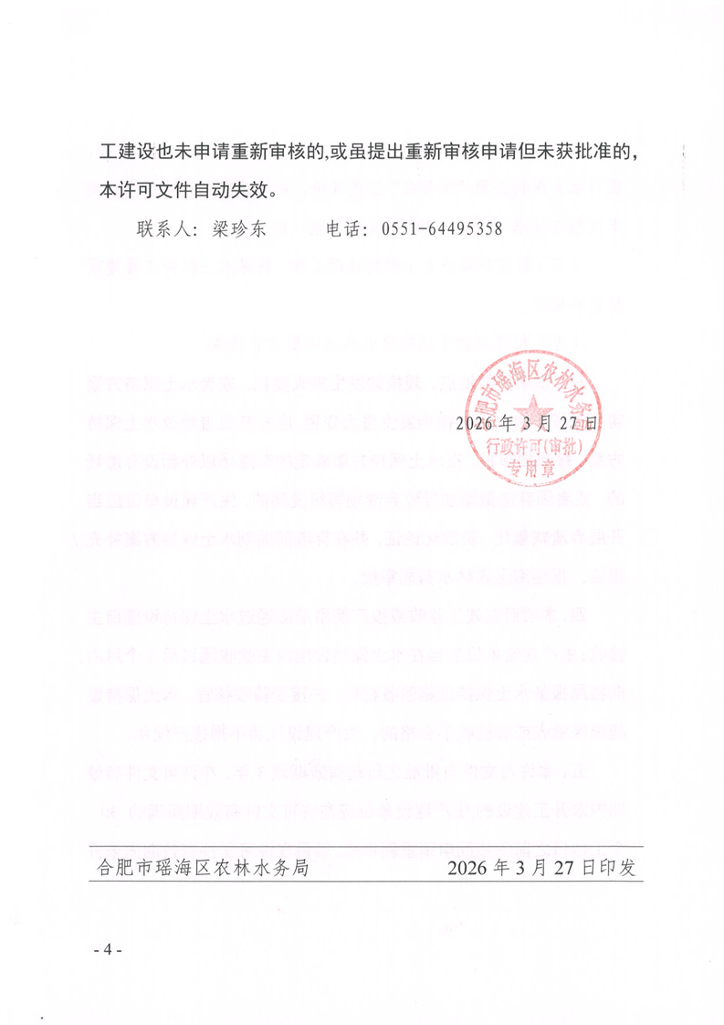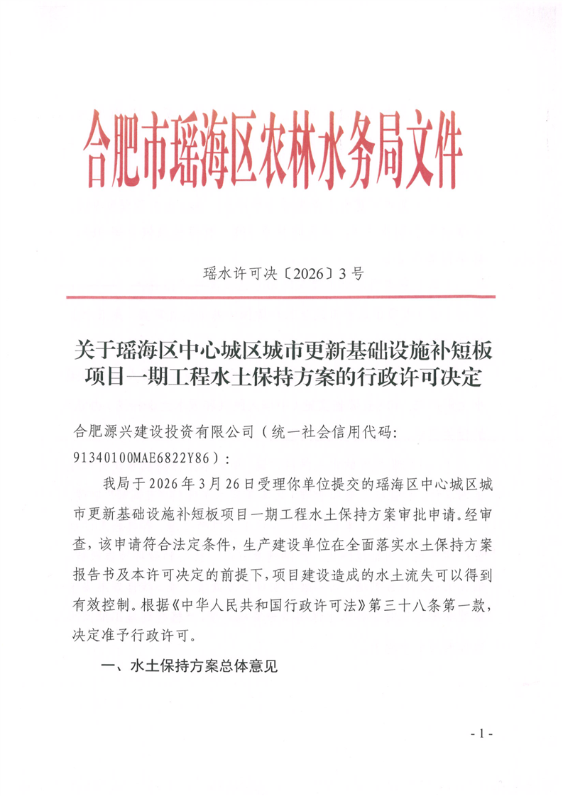 水土保持行政许可决定〔2026〕3号:瑶海区中心城区城市更新基础设施补短板项目一期工程 |