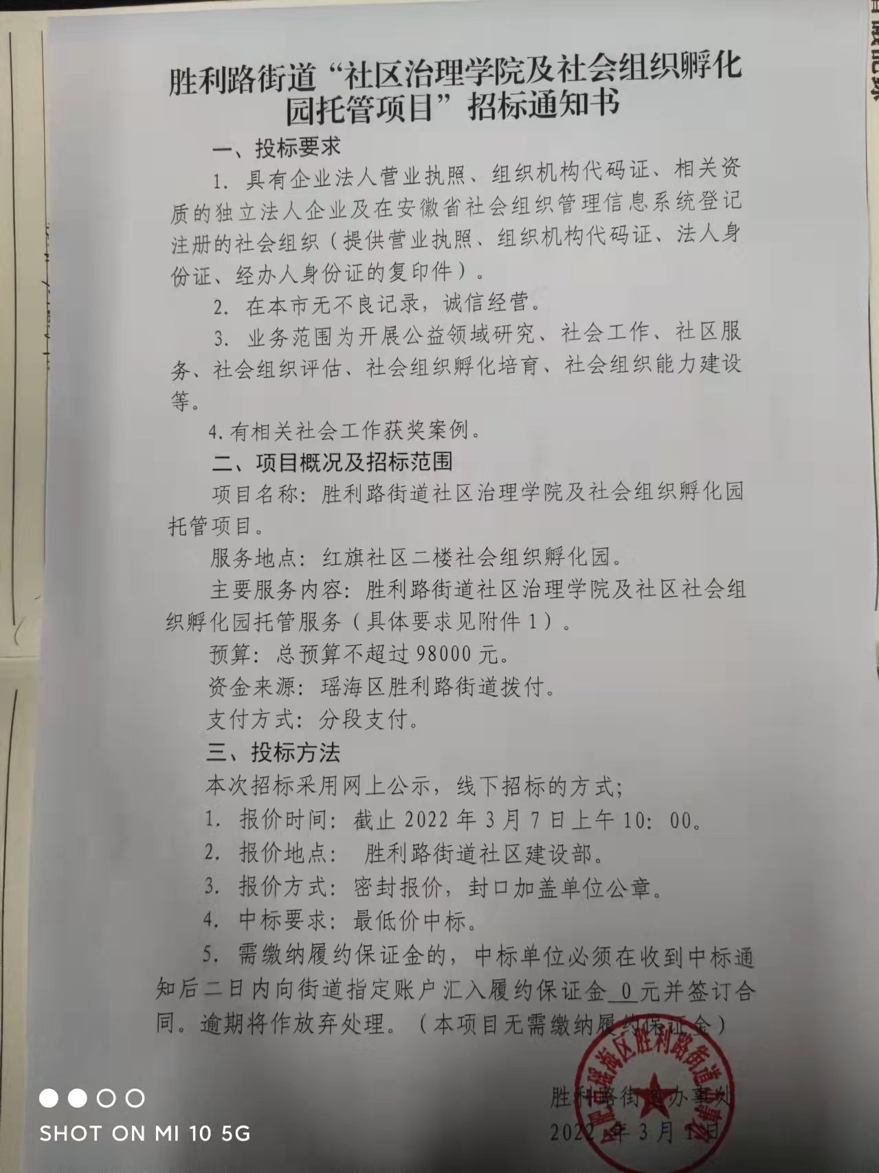 2022-2023年度胜利路街道社区治理学院项目托管、社会组织孵化园项目托管、胜利路街道一居一品品牌设计、街道驻点社工技术支持1名。