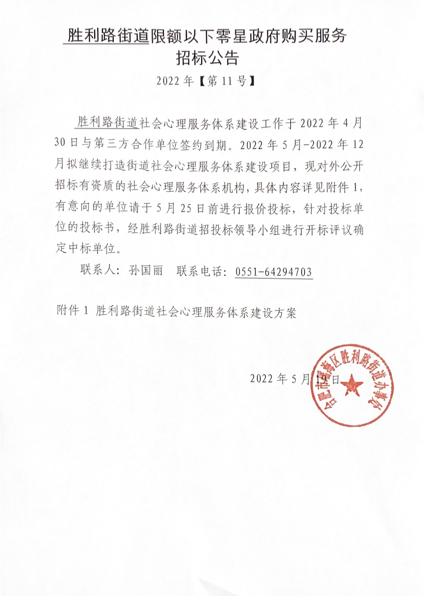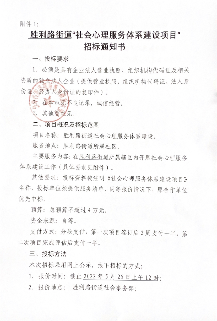 项目名称:胜利路街道社会心理服务体系建设项目